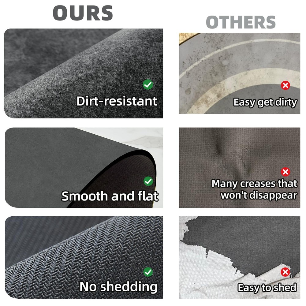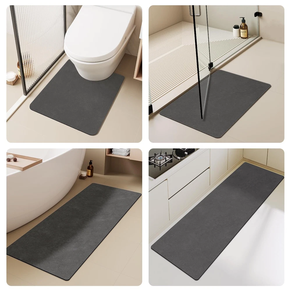 Our bath mat offers the perfect blend of comfort and functionality, making it a must-have for any bathroom. Designed with a sleek, minimalist style, this bath rug is super absorbent, quickly soaking up water the moment you step out of the shower or bathtub. Within minutes, the mat dries, leaving no wet spots or watermarks behind, so you can enjoy a dry, clean bathroom floor every time. The bathroom mat features a high-quality non-slip backing made of natural rubber, ensuring it stays securely in place even on smooth surfaces. This upgraded backing provides enhanced stability, reducing the risk of slipping for both kids and the elderly. Unlike traditional bathroom rugs, this bath mat won’t curl up or slide around, giving you peace of mind. Thanks to its thin design, this bathroom rug fits easily under doors, making it a great choice for smaller spaces. It’s perfect not only for the bathroom but also for use in the laundry room, kitchen, or even as an RV bath mat. Available in multiple sizes and colors, you’ll find the ideal fit for any space, whether you need a small bath mat, a larger rug, or a bathroom runner. Whether you’re looking to enhance your bathroom decor or add a practical touch to any room, this bath mat delivers on both comfort and performance. Indulge in Luxury and Comfort: Our bathroom mat features a sleek, modern design that absorbs water efficiently, even though it's not fluffy. Its thin profile fits under doors easily, making it an ideal choice for small bathrooms with limited space. Step onto our soft, cozy bath mat after your shower and feel the comfort embrace your feet Fast Absorbing & Quick Drying: Our bathroom rug absorbs water instantly as you step out of the shower or bathtub. In just a few minutes, it’s completely dry, with no watermarks left behind. The mat dries quickly, so your floor stays clean and dry Upgraded Non-Slip Backing: Our bath rugs feature a high-quality natural rubber backing, providing perfect anti-slip properties on the floors. They tightly grip smooth surfaces without skidding or curling up, reducing the risk of slipping for kids and the elderly. Say goodbye to traditional slippery TPE/TPR backed bathroom rugs and enjoy enhanced safety and stability Easy to Care: Thanks to the hairless new-tech layer, these bathroom mats are easy to clean. Water evaporates quickly, preventing dirt and hair from attaching to the surface. No need machine wash. After long-term use, simply wipe it with a wet cloth, rinse it with a shower nozzle or use vacuum cleaner. And dry it in open air after washing.To ensure it has a long life time, please do not use of dryer or bleach cleaning Multi-Purpose Use: Available in a variety of colors, these bath rugs complement any décor style. Having lots of sizes to choose from, such as small bath rug, large bath rug,long bath rug and bathroom runner rug, you can easily find one to fit in front of the sinks, showers, or bathtubs. You can also use them in the kitchen, bedroom, laundry room, RV, hallway, entryway, stairs, and more