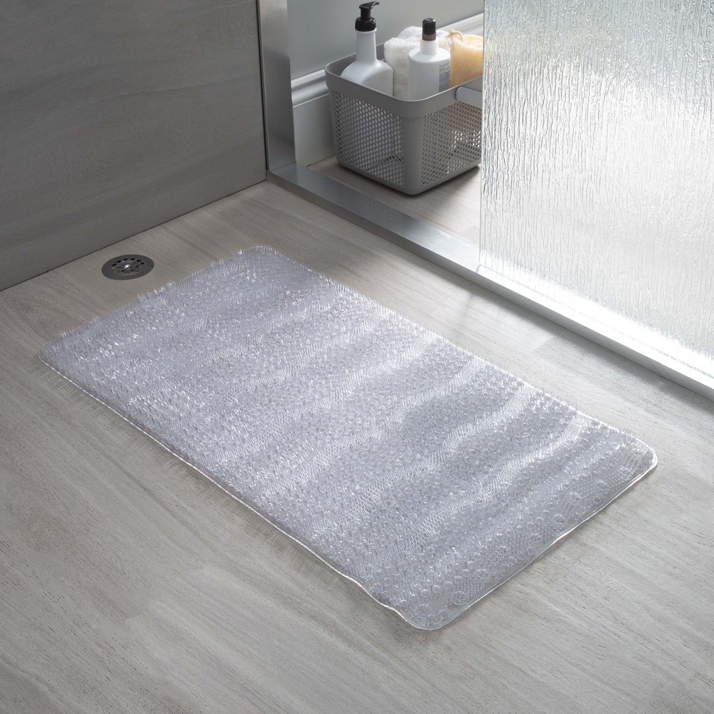 About this item Non-Slip Textured Grass PVC Bath Mat Dimensions: 27.9"x 15.7" Textured Grass Design Self-Draining Non-Slip Suction Cup Backing