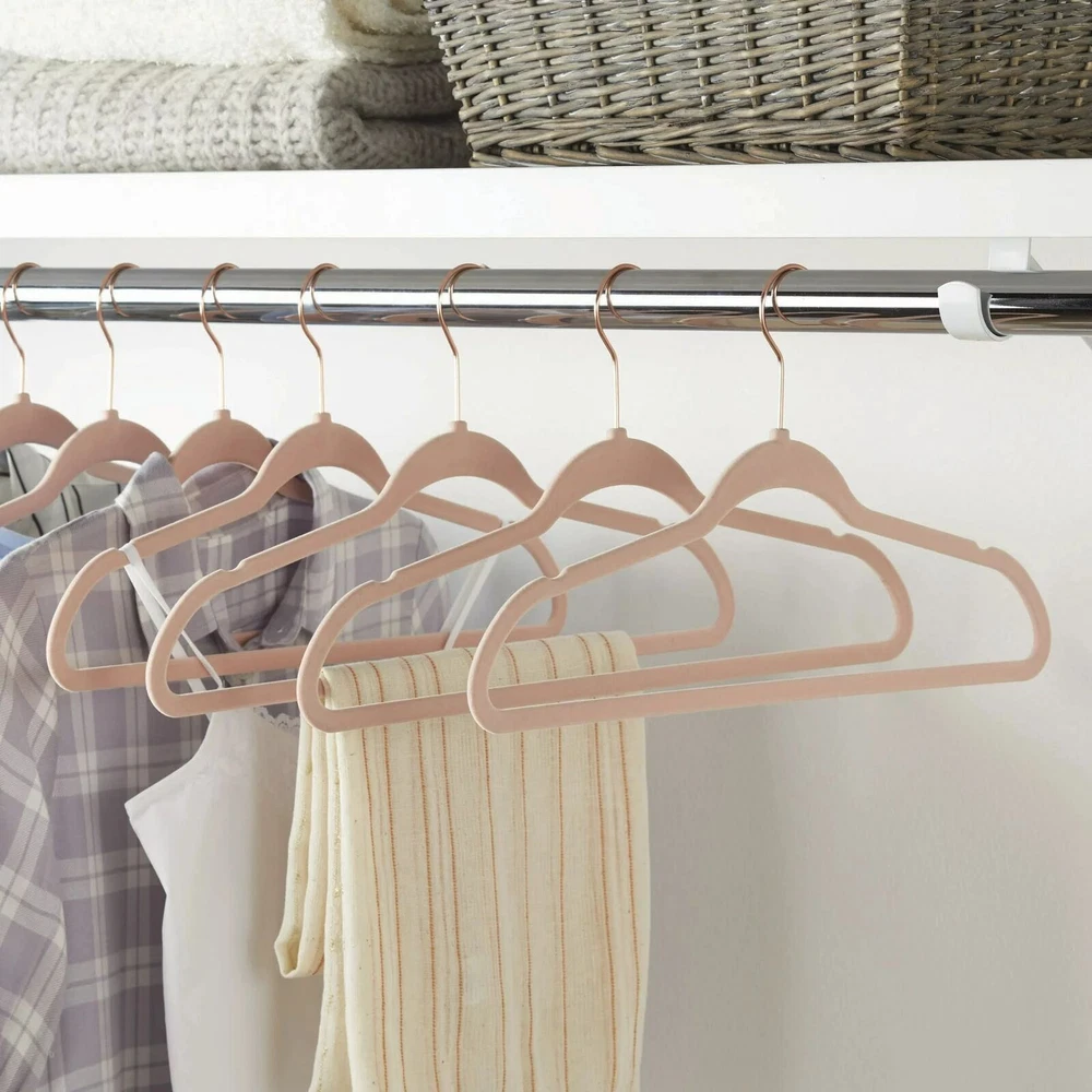 Our Ultra Slim hangers will help to organize your closet with both style and functionality. These 100 PK beige flocked suit hangers are designed to effectively keep your wardrobe organized with slim, space-saving construction helping to increase the size of your closet. These hangers are soft to the touch, non-slip, and will help keep your garments in place and their original condition and shape. 100 Nonslip Ultra Slim hangers Effective non-slip hangers - textured exterior is perfect for keeping clothes off your closet floor Durable synthetic material with a wire neck and hook - felt non-slip outer layer Neutral and delicate pale color for a chic and organized look in your closet Includes petite indentations to hang tank tops, skirts, pants, blouses and more Large size ideal for shirts, skirts, tank tops, sweaters and more Non-Slip, Slim and Space Saving - can also be used for both wet and dry clothing On Dec 3, 2023 at 23:16:55 PST, seller added the following information: On Nov 9, 2024 at 22:33:14 PST, seller added the following information: