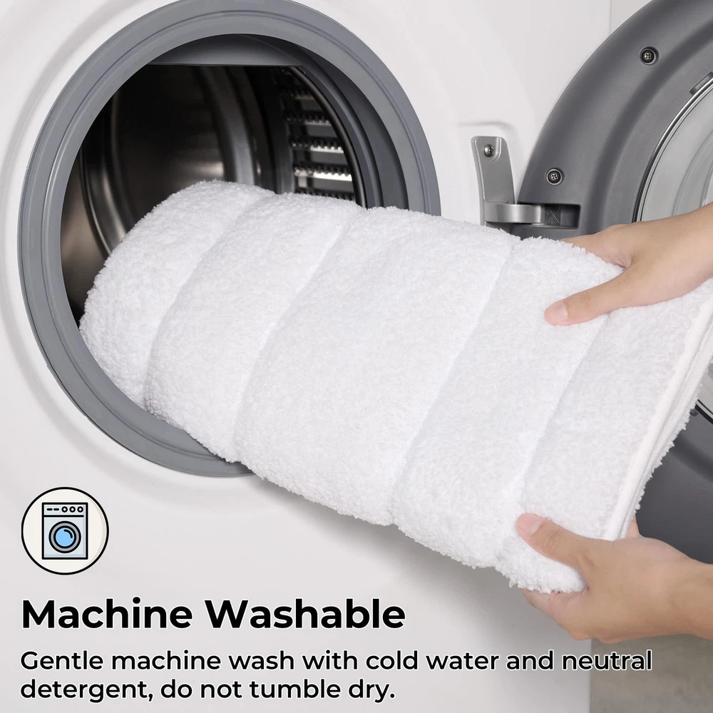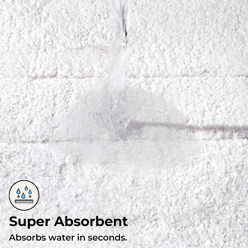 Love these plush bathroom rugs! Super soft underfoot and the non-slip backing keeps them securely in place. Perfect size for next to the sink or shower, and they wash well without losing fluffiness. The bright white stays fresh-looking, a great upgrade for any bathroom.