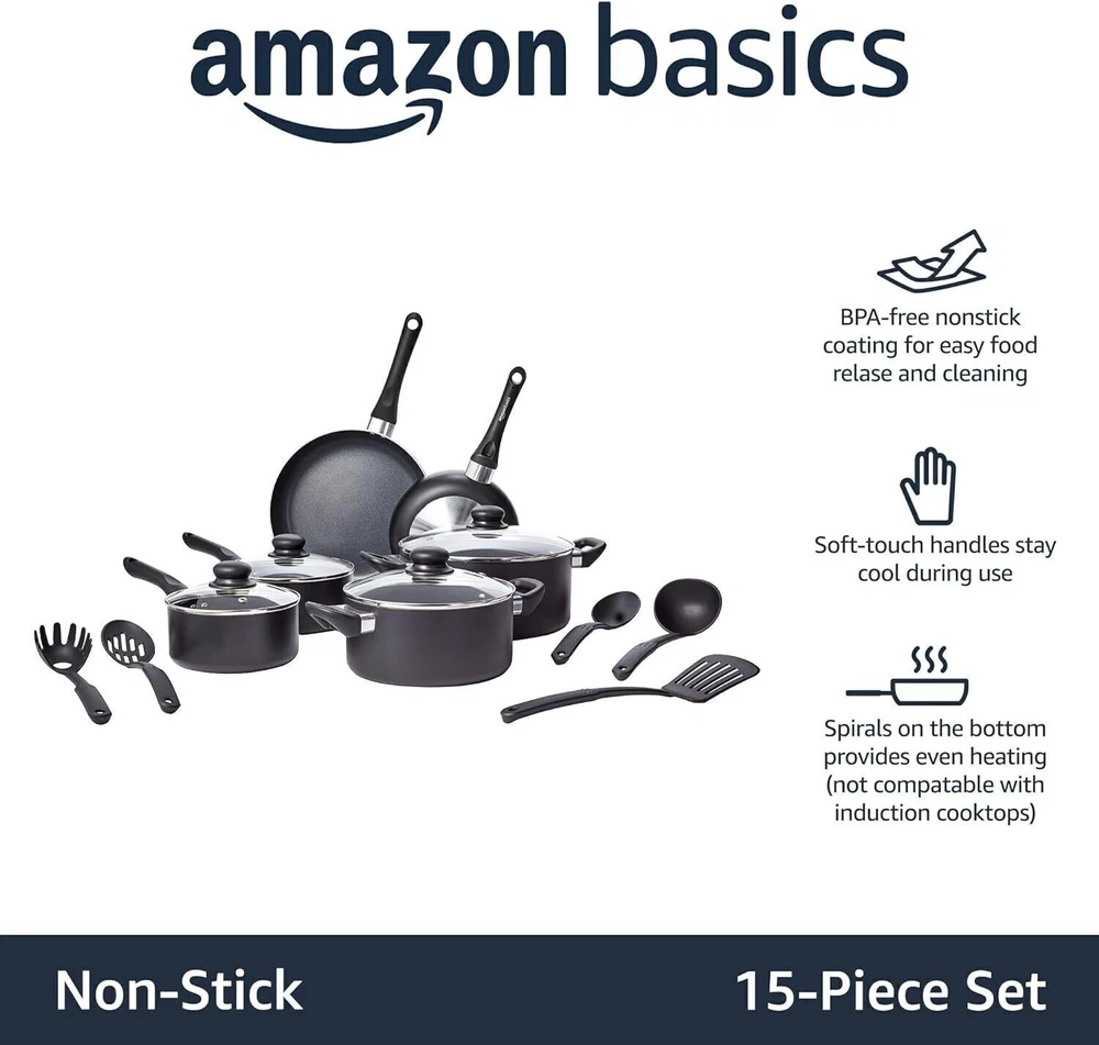 You may also like Gun Vise with Adjustable Cradle and Non-Marring Surfaces for Firearm Cleaning US 64.84 USD Free shipping Media Storage Cabinet Movie Video Game Organizer CD DVD Tower Stand Shelf Rack 99.67 USD Free shipping Seniors Rollator Seat Wheels Durable Corrosion Free Frame Capable Up 350 Pounds 142.83 USD Free shipping 31 Gal Outdoor Trash Can Waterproof Resin W/Tiered Lid & Drip Tray Garbage Bin 62.83 USD Free shipping Olive Green Corduroy Microfiber Omaha Bed Rest Pillow Compact Comfort Support 59.52 USD Free shipping 13-Tier Wooden Plant Stand Eco-friendly Design Large Capacity & Versatile Use 48.58 USD Free shipping 64"x21" Arched Full Length Mirror Floor Mirrors Wall Mounted/Leaning Mirror Blac 79.93 USD Free shipping 18 In Charcoal Grill Outdoor Cooking Barbecue Camping BBQ Coal Kettle Portable 65.83 USD Free shipping Paris Oval Clock Retro French Rough Antique White Clock Face Of Roman Numerals 94.77 USD Free shipping Women's Incontinence Bladder Supports Improve Control Worn Up 12 Hours 24 Hours 45.3 USD Free shipping 2.6 Qt Electric Deep Fryer W/Basket & Drip Hook Removable Lid View Window 1200W 69.82 USD Free shipping Heavy Duty 5-Shelf Shelving Unit 1250 Lb Capacity 29.92D x 13.98W x 62.99H In 57.46 USD Free shipping About this item 15-piece cookware set includes 8-inch fry pan, 10-inch fry pan, 1.5-quart saucepan with lid, 2-quart saucepan with lid, 3-quart casserole pan with lid, 5-quart casserole pan with lid, and 5-piece utensil set with pasta server, soup ladle, slotted turner, serving spoon, and slotted serving spoon Nonstick coating for easy cooking and cleaning; BPA-free Soft-touch handles stay comfortably cool during use Spiral bottom heats evenly; compatible with all cooktops, except for induction Hand wash only Note: For nonstick longevity, best used on low to medium heat; please check size of stovetop's hobs before purchasing Brew Sense Drip Coffee Maker Fully Programmable 24 Hour Clock Auto on/off Black 70.6 USD Free shipping Electric Automatic Ice Cream Maker & Frozen Yogurt Machine, Makes Custard, 4 Qt 52.24 USD Free shipping 44 Drawer Plastic Parts Storage Hardware & Craft Cabinet Stackable Organization 48.63 USD Free shipping 30 Pcs SAE/Metric Hex Torx P Handle Set Pistol Rifle Handgun Rebuild Maintenance 59.87 USD Free shipping Extra Large 10 Quart Slow Cooker Portable W/Lid Lock 3 Settings Dishwasher Safe 69.82 USD Free shipping Step Ladder 600 Lbs Extra Large 2 Stools Personalized Folding Adults Household 48.06 USD Free shipping 64"x21" Arched Full Length Mirror Floor Mirrors Wall Mounted/Leaning Mirror Blac 79.93 USD Free shipping 0.7 Cu Ft Countertop Microwave Oven W/LED Lighting &Child Lock Programmable 700W 69.82 USD Free shipping Cordless Advanced Water Flosser W/Travel Bag & 4 Tips Rechargeable Dental Care 83.59 USD Free shipping Paint Sprayer W/Cleaning & Blowing Joints 4 Nozzles 3 Patterns Adjustable Flow 46.81 USD Free shipping Insulated Cooler Backpack Leakproof Lightweight 30 L Grey Versatile Outdoor Gear 36.9 USD Free shipping 5-Drawer Fabric Storage Organizer Closet Bedroom Steel Frame Black Color New 59.84 USD Free shipping