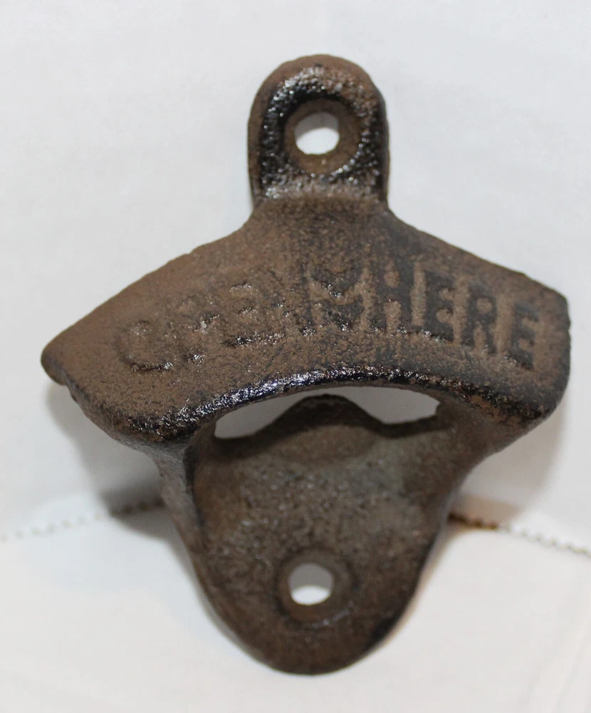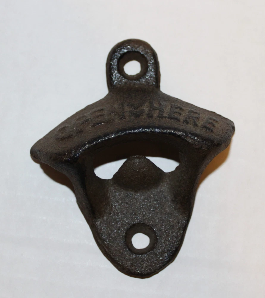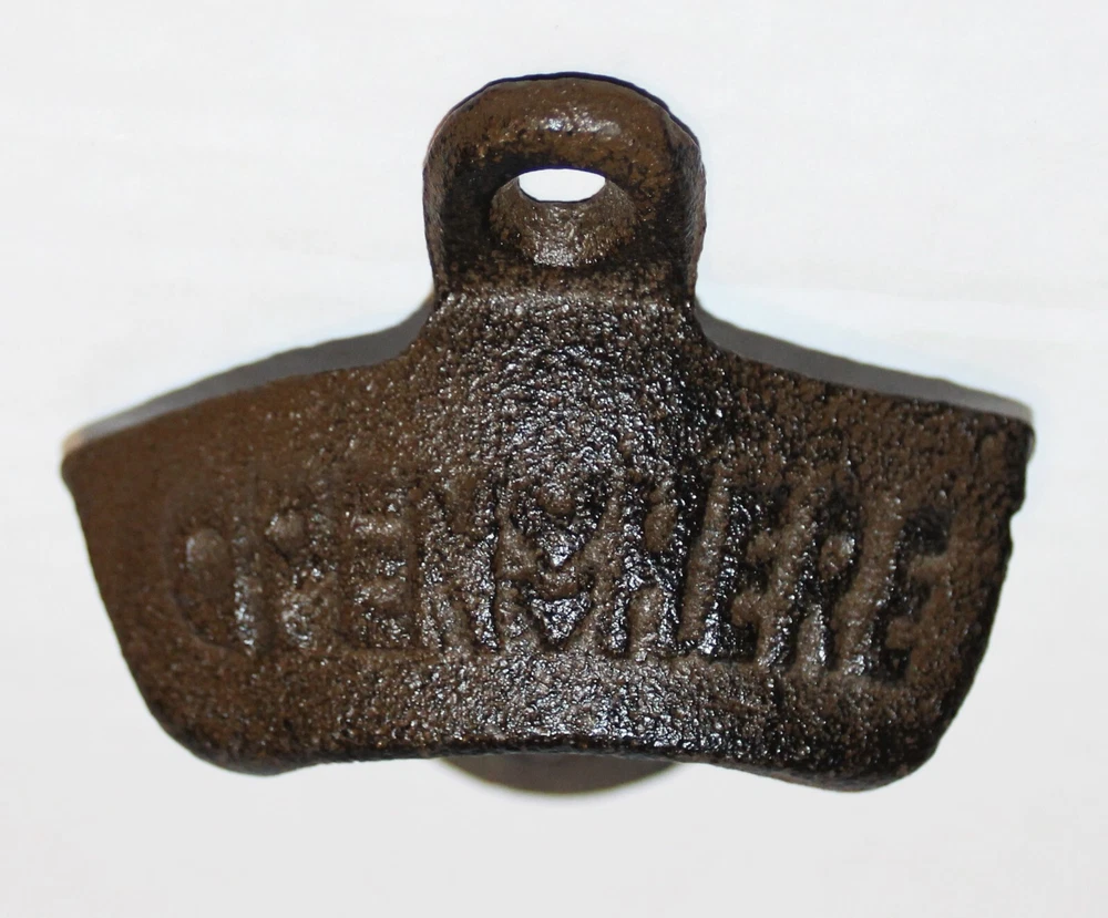 "Open Here " Non-mechanical Metal Bottle opener Wall Mount 2 Premade Screw Holes 3in USPS First Class Mail Large Envelope