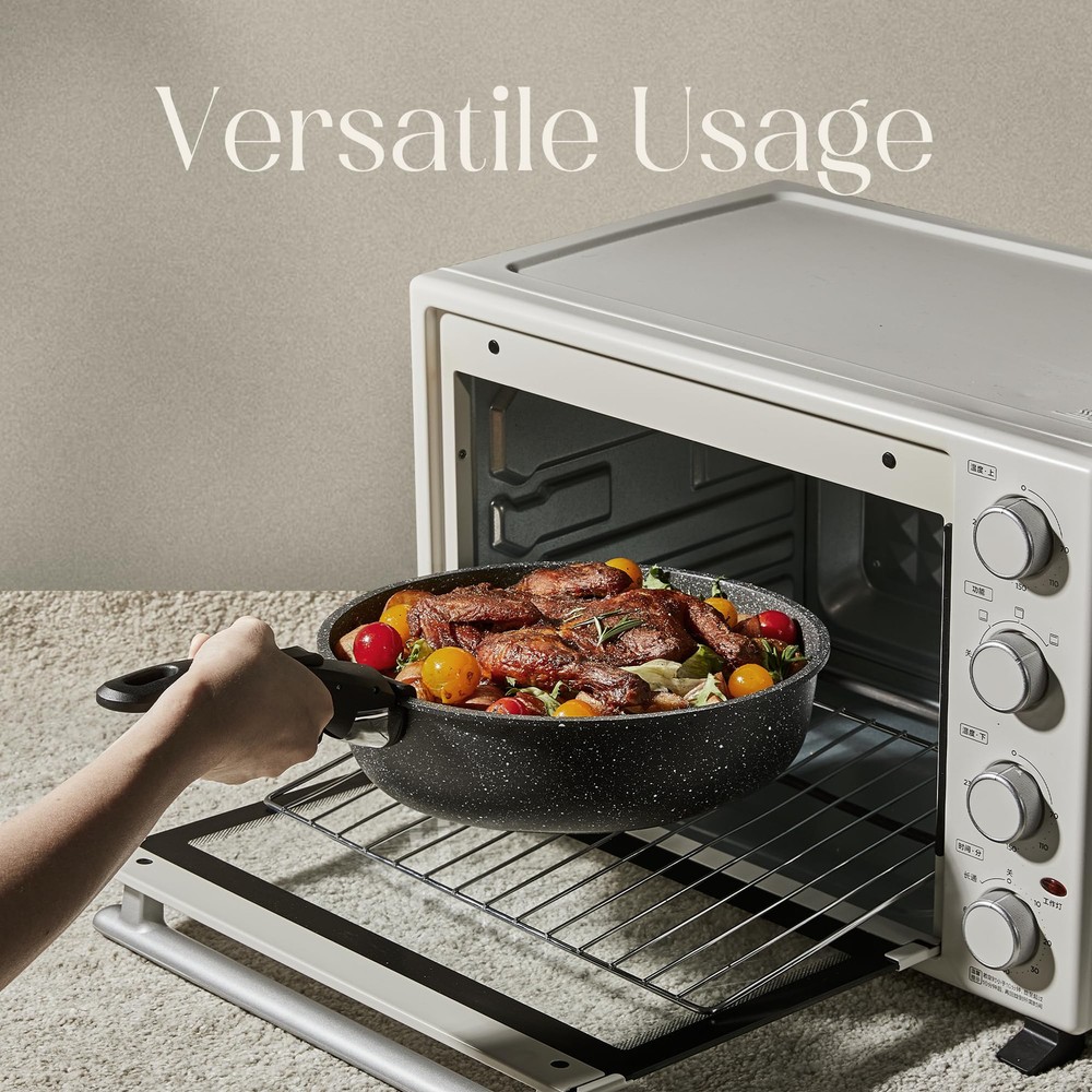 Ultimate Versatility: The removable handle lets you experience kitchenware's ultimate versatility. It can go from stove to oven, serve on the table, and into the fridge. Unique Removable Handle: With professional safety test, it withstands up to 22 lbs/ 10 kg. Just a simple click, start your kitchen journey. Long Lasting Non-stick Granite: Safe to use, 0% PFOS, PFOA. Features unique non-stick technology, the longest-lasting non-stick among items. Oven Safe: Induction-, plus oven safe up to 480F thanks to its removable handle. Optimal Stack Storage: Optimal storage and easy stacking with the handle ff saves up to 50% more space. Suitable For All Stoves: Enlarged high magnetic conductive base features it heats up quickly and evenly and works on all cooktops, including induction top. Set Includes: 1 x removable handle, 2 x frypans (9" & 10"), 1 x sauce pan (2qt), 1 x glass lid with silicone ring (7”) Worry-free Service: Each cookware passes a strict multi-inspection process. In case you received defective items caused by delivery, please don't hesitate to reach out, You will be guaranteed to get a solution or a new .