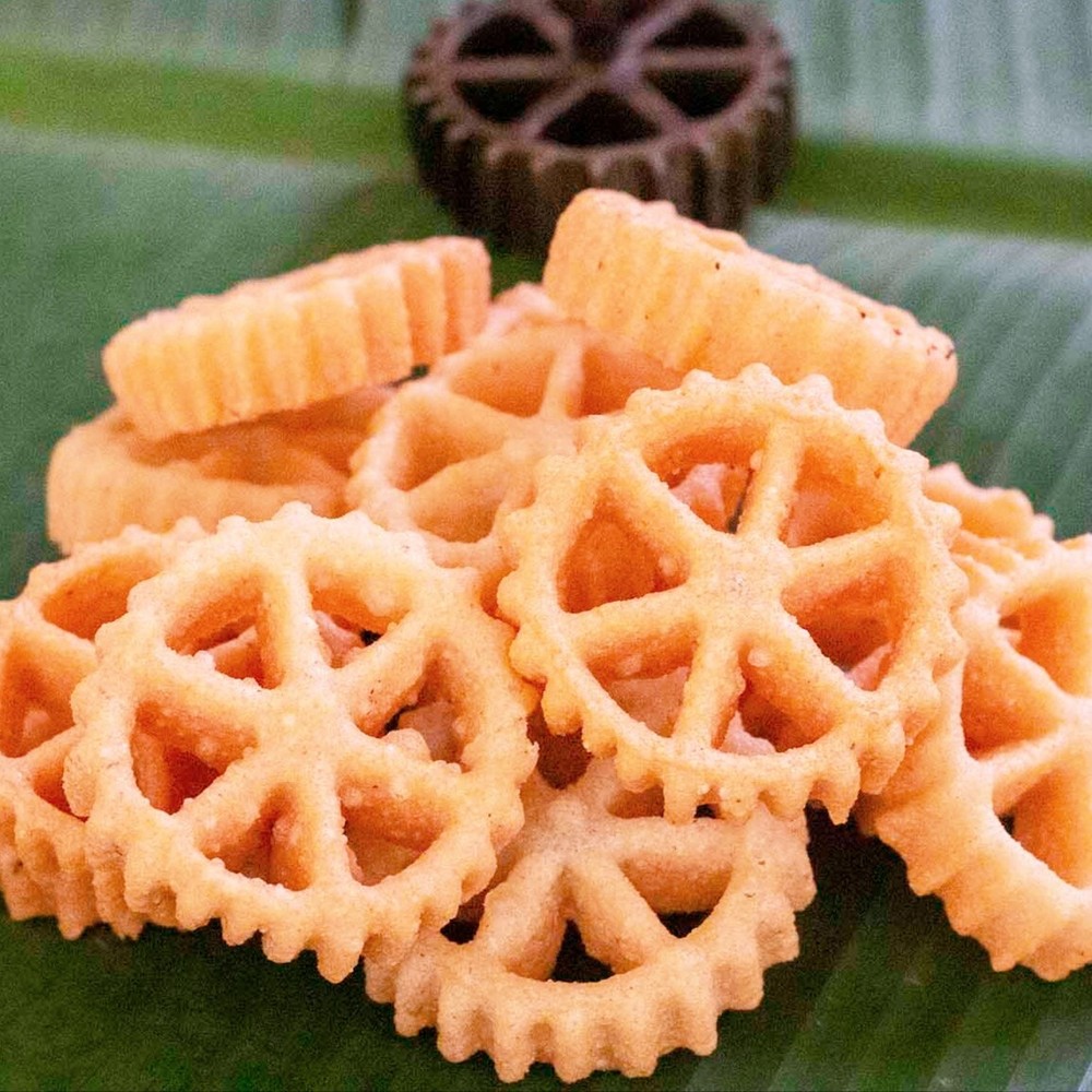 Kokis Mold Non-stick Achchu & Stick Sri Lanka Avurudu Cookie Mould Rosette Maker NONSTICK KOKIS Mould/Mold & Free Wooden Stick - Crispy Sweet Cookie Rosette Maker - Sri Lankan Traditional New Year Awurudu Food Kokis Achchu Kokis or Rosette cookie, a beloved traditional sweet, enjoying during Asian celebrations and a crunchy dessert of Western cuisine. Kokis is easily found in Sri Lanka, Sinhala & Tamil New Year table, which is a simple yet delightful dish that requires a specific metallic mould with a comfortable handle and a wooden stick for preparation. The ingredient mixture including rice flour and coconut milk, fry using the mould and it helps in effortlessly removing the cooked Kokis from its shape. *** What makes our Kokis Mould Special & Unique is that, it is made of three parts joined together in quality materials, which makes very easier to handle, the mould and the handle in different angles. Therefore, the cooking kokis mixture is removed into the oil freely at the right time giving best taste. Furthermore, you can tight or loose the connector as your requirement and safety measures. *** Materials & Sizes · Non-stick Kokis Mould & Stainless-Steel Wire Rod - Extremely Corrosion Resistant · The Handle is covered with a sturdy and thick grip to withstand heat, ensuring safety of hand · Free Wooden Stick further helps to remove the mixture in shape from the mould and to handle and collect fried kokis in hot oil o Diameter of Kokis Mould: Almost 2.8 inches (7cm) o Handle Size of the Mould: 12 inches (30cm) o Wooden Stick size: 13.5 inches (34cm) Features ü 100% Brand New & High Quality ü Non-stick Kokis Mould ü Stainless Steel Wire Rod ü Traditional Cooking Tool ü Durable & Reusable ü User-friendly ü Easy to Clean ü Heat Resistant ü Handle Griper Ingredients · Rice Flour 5oog · Coconut Milk (Thick) 02 Cups · Egg 01 or 02 (As per taste and it helps to separate the kokis and the mould easily) · Salt 01 Tsp · Turmeric Powder 1/2 Tsp · Cinnamon Powder 1/4 Tsp (optional) · Oil For Deep Frying Cooking Method, Information & Using the Mould · Combine the egg with thick coconut milk. · After mixing well, add salt and blend again. You can optionally add some turmeric powder and cinnamon powder. · Adding eggs helps in removing the kokis from the mould easily at once, further enhance the taste. · Heat oil and wait for bubbles to appear. Then, place the kokis mould in the oil for a few seconds to warm it up. · Gently dip the mould into the batter (except upper surface) and reposition it in the oil without submerging it completely. · You can manage our kokis mould freely in angles whatever the position of the pan or you are. · Be cautious not to let the mould touch the bottom of the frying pan otherwise, the kokis will have a flat base. · As the kokis begins to separate from the mould, use wooden stick to detach it completely into the oil and continue frying until it turns golden brown. · Initially, prepare 1-2 kokis to test the consistency. If needed, adjust the mixture by adding more coconut milk and salt for taste. Once the kokis are ready, remove them from the oil. · Be careful while the frying process in heating oil, at your own pace. Repeat this process with the remaining batter. · Those cooked Kokis cookies can be stored airtight and used more than 10 days without a change of taste or aroma. Important : If you require the item sooner than mentioned time period, i am ready to provide you the item faster choosing a faster shipping service. But it may add additional shipping cost. As such, if you have such requirement, feel free to contact me for any doubt or info. Dear Valued Customer, Your Feedback is very important for our success. Feel free to contact us for any query. We work hard to exceed your expectations & It is our pleasure to fulfil your needs. ***Thank You for Visiting Ceylon Sparkle***Hope to Welcome You Back Soon***