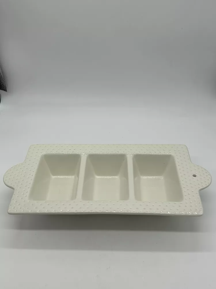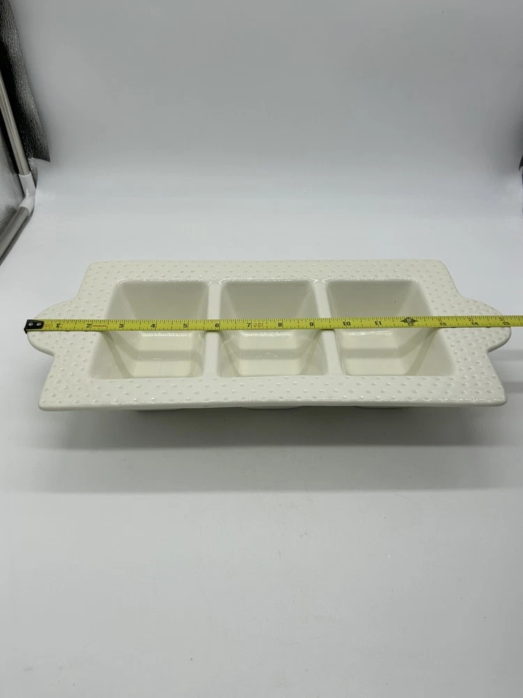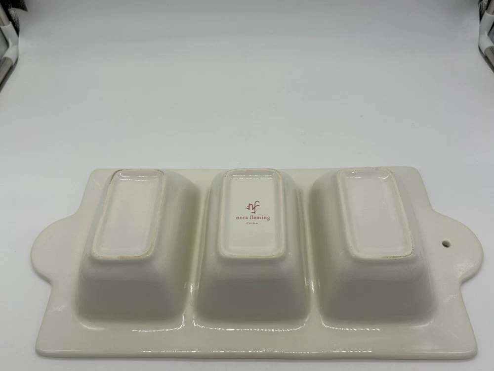 Nora Fleming I5 Swiss Dot 15" x 7" Divided 3-Section Garnish Relish Dish RETIRED