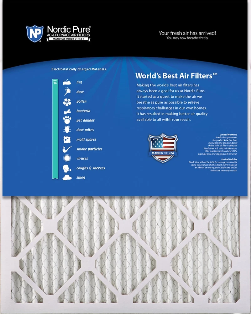 Nordic Pure 20x24x1 (19 1/2 x 23 7/16 x 3/4) Pleated MERV 14 Air Filters 2 Pack Nominal Size: 20 x 24 x 1, Actual Size: 19 1/2 x 23 7/16 x 3/4 (19.5 x 23.44 x 0.75) Measure your air filter for the exact size and compare it to our actual size to ensure proper fit. Made with MERV rated synthetic poly blend pleated media Nordic Pure recommends changing 1" air filters every 30-90 days Made in the USA. Nordic Pure Pleated Air Filters MERV 14 are made of electrostatically charged synthetic materials that attract and capture most airborne particulates in your home. Each time air passes through a Nordic Pure in. Pleated furnace filter it removes contaminants from the air. All Nordic Pure in. Pleated air filters are manufactured using a heavy duty, moisture resistant beverage board frame with a metal mesh support grid bonded to the in. Pleats. MERV 14 furnace air conditioner filters are comparable to HVAC filters with the rating of MPR 2800. It is important to note that because of this high filtration and air flow restriction, HVAC systems should be rated to handle filters of MERV 14 and above. Nordic Pure MERV 14 air filters work great in newer, high efficiency systems that use HEPA filters. The effective life of your AC air filter depends on both the inside and outside conditions in which you live. We recommend that you change your air filter every 30-90 days to maintain maximum efficiency and economy. bImportant Note:/b Almost ALL furnace filters have a different \"actual size\" than the nominal size printed on the air conditioner filter. It's best if you measure your air filter for the Exact size and compare it to our \"Actual Size\" - and then you can be sure your A/C air filter fits. Shipping We offer FREE shipping on all orders! We use a selection of shipping services such as UPS, FedEx, USPS etc. We only ship to the lower 48 states, no APO/FPO addresses or PO Boxes allowed. Local pickups and combined shipping options are not provided at this time. Return You can return a product for up to 30 days from the date you purchased it. Any product you return must be in the same condition you received it and in the original packaging. Please keep the receipt. Payment We accept payment by any of the following methods: PayPal Please pay as soon as possible after winning an auction, as that will allow us to post your item to you sooner! Feedback Customer satisfaction is very important to us. If you have any problem with your order, please contact us and we will do our best to make you satisfied. Contact Us If you have any queries, please contact us via ebay. We usually respond within 24 hours on weekdays. Please visit our eBay store to check out other items for sale! Thank you for shopping at our store.