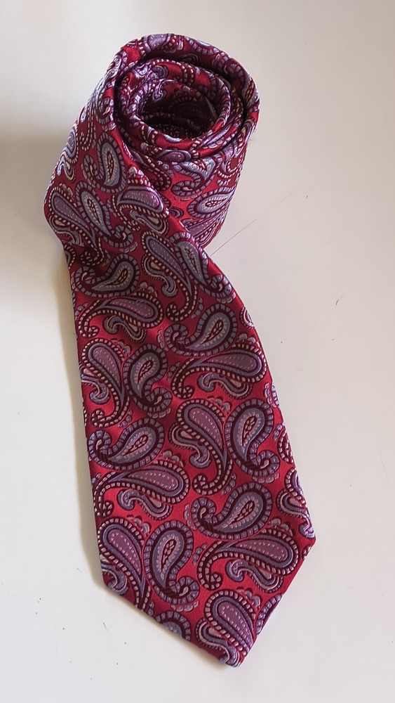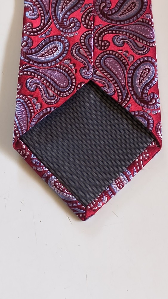 This silk tie is a sharp, elegant addition to any wardrobe. The rich red and blue paisley pattern adds a sophisticated touch, while the smooth silk feels luxurious. Perfect for dressing up a suit or adding flair to a casual blazer, it’s versatile and well-made. The classic width and length ensure a polished fit every time. A standout piece that elevates any look effortlessly.