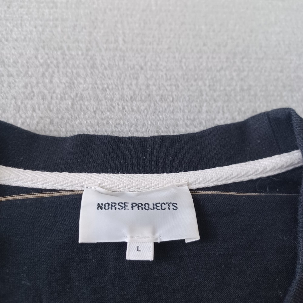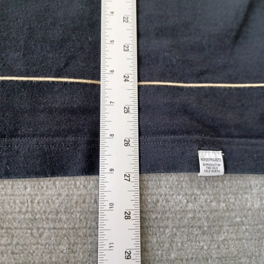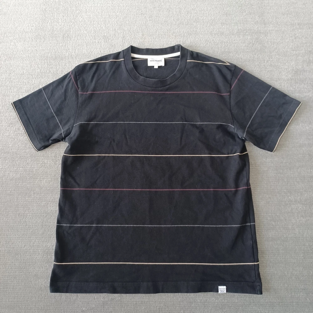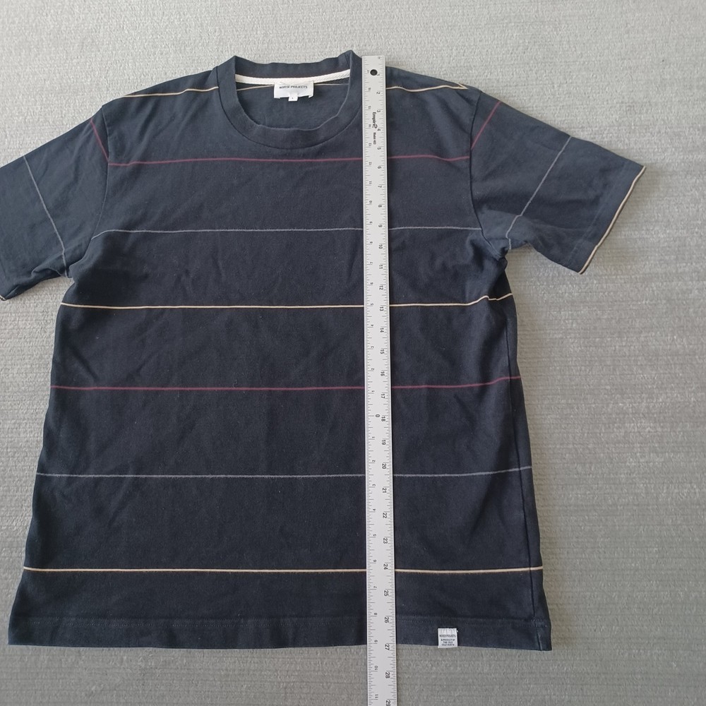 Norse Projects Johannes Thin Stripe T-Shirt Mens Large Black Short Sleeve Casual Great pre-owned condition, no flaws Please review all photos for details and measurements.