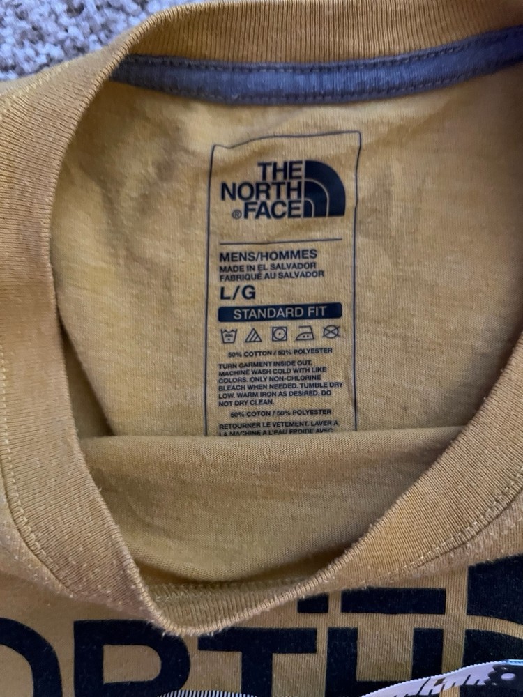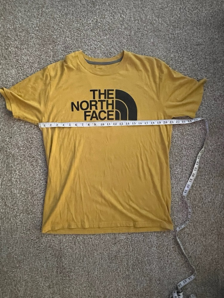The North Face Logo Marigold Yellow Short Sleeved Crew Neck Tee Shirt - Men’s US. Condition is Pre-owned - Good. Shipped with USPS Ground Advantage.