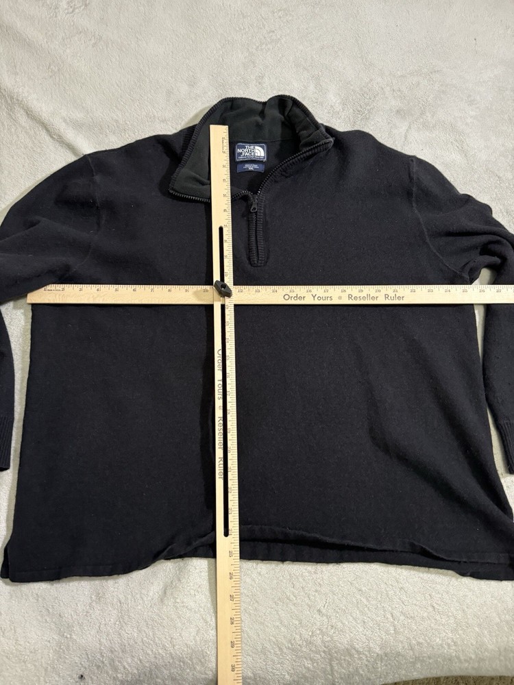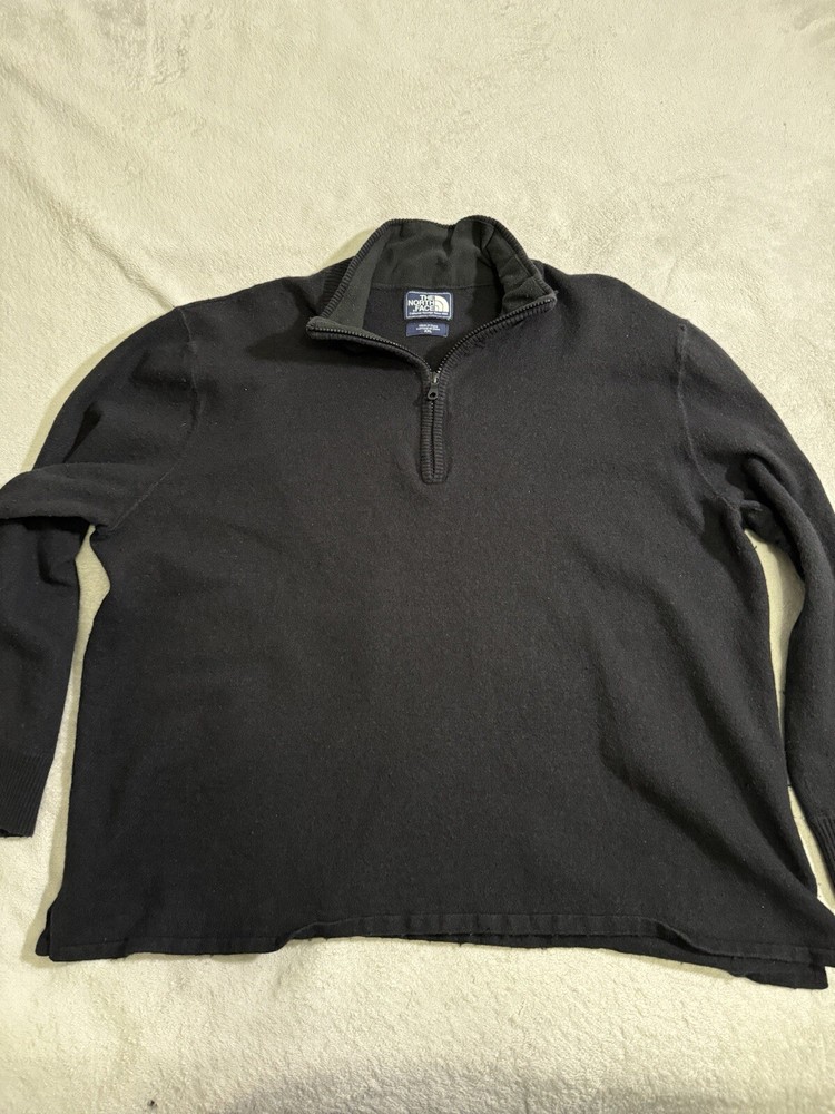Elevate your outdoor look with this stylish North Face sweater. Made of a comfortable cotton, wool, and acrylic blend, this tight-knit pullover features a solid pattern with an embroidered logo accent. The long sleeve and mock neck design make it perfect for any occasion, whether it's a casual day out or a business meeting. This sweater comes in a regular fit with a 1/4 zip feature, making it easy to put on and take off. It is available in black color and in size 2XL. The North Face brand is known for its quality products, and this sweater is no exception. Whether you're exploring the great outdoors or just running errands, this sweater is a must-have addition to your wardrobe.