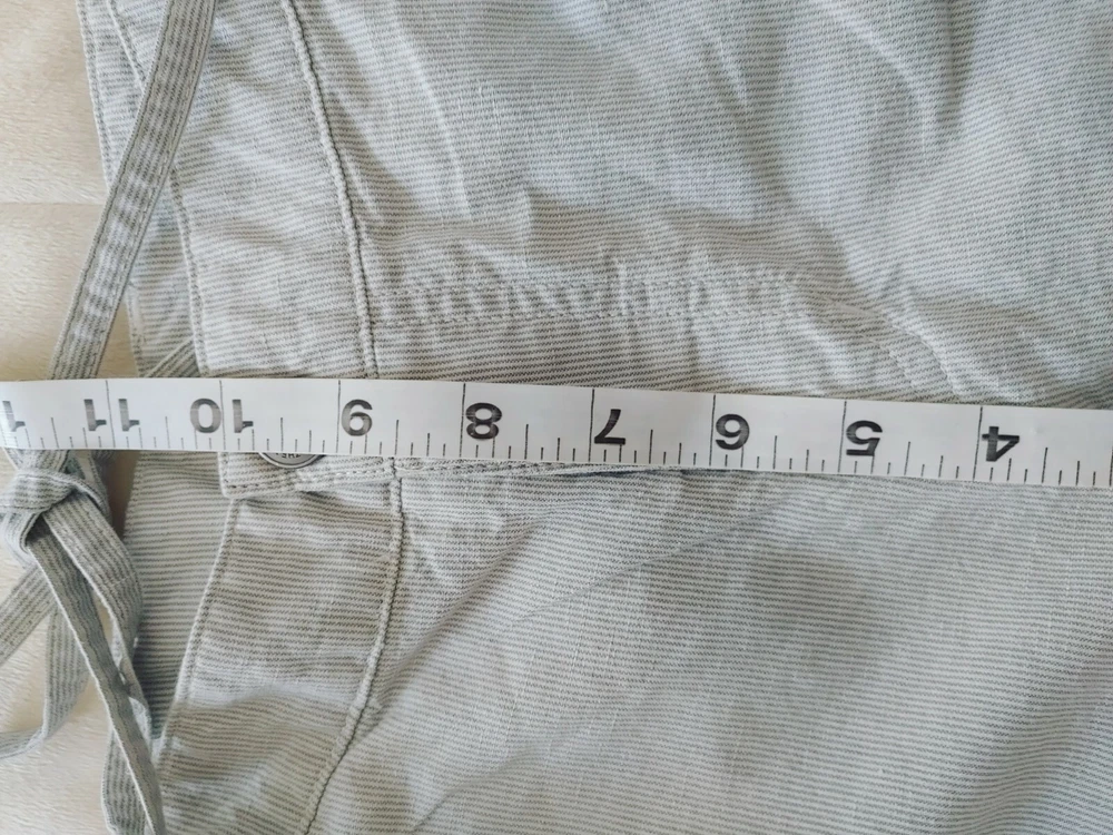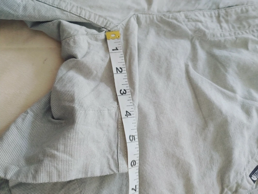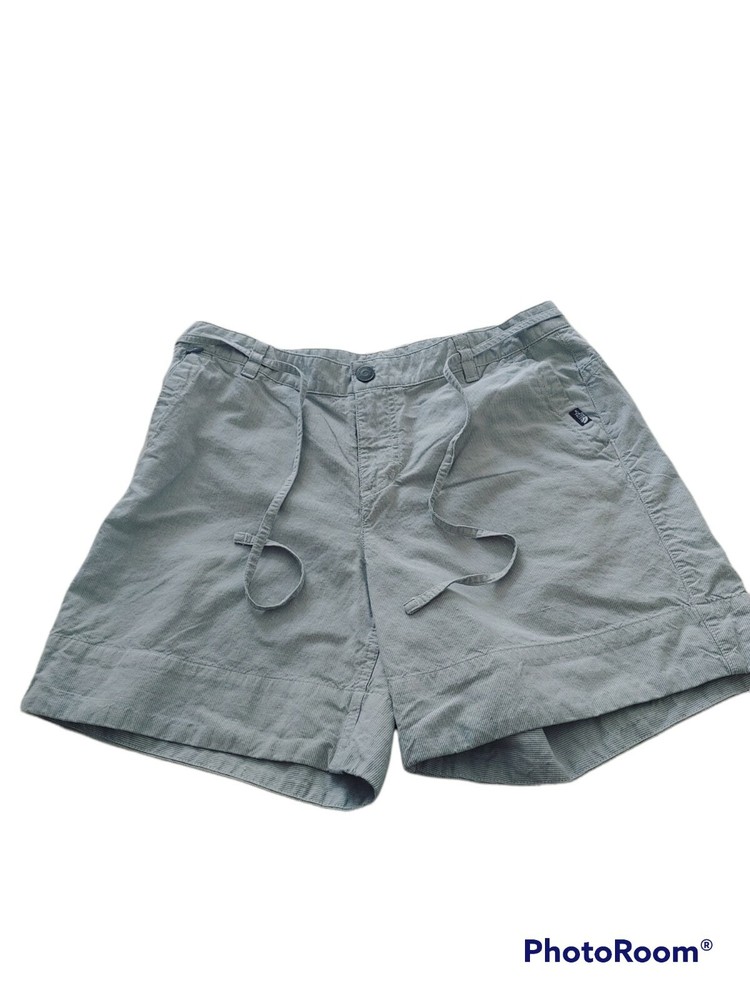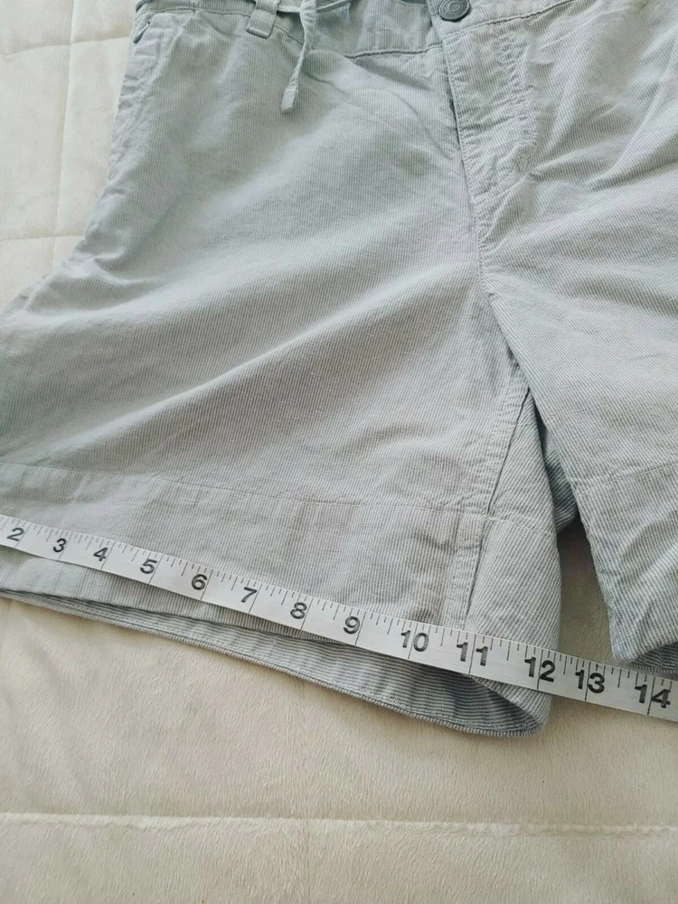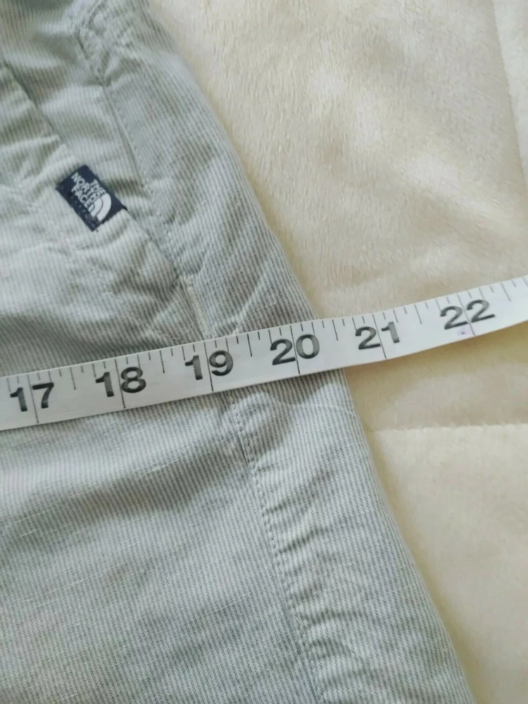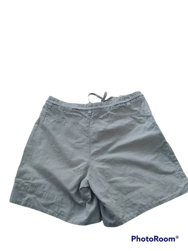North Face Women's Shorts Grey/white Pin Stripe Linen 56% / 44% Cotton Size 8. Lining is 65% poly 35% cotton Measurements shown in photos 6" inseam 34" waist