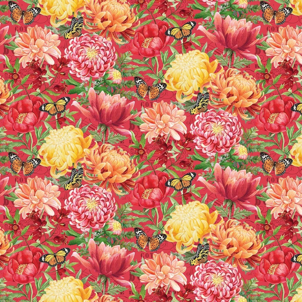 Northcott Fabrics - Morning Blossom Floral on Red 100% Cotton Fabric by the Yard Machine Wash Tumble Dry No Bleach We always send continuous yardage when available, or if not available, we will contact you first. We also create are own line of fabric panels under our brand, Country Charm USA Fabrics. These designs are created by the owner, Bruce Michael. Fabrics are high quality 100% cotton for quilting made overseas. These fabric are only sold by us direct. Limited quantities for a unique on of a kind quilting panel. We offer FREE SHIPPING on all order of $50.00. We will refund the shipping charges when we ship your order. All orders are shipped same day or next day if placed after 1PM central time zone. We ship by 1st Class Mail for up to 16oz. (about 2.5 yards). Orders over 16oz we ship by Fedx 2 day shipping, (no extra charge for you) or by Prioirty Flat Rate Mail, which ever is most affordable for your area. For fabric orders under 2.5 yards, we ship First Class Mail. Exceptions are flannel fabrics which can be heavier in size and weight. So we will ship out by most affordable to your location. We don't do international shipping at this time. Have a wonderful sewing day!! Bruce - Owner - Artist Amy - Customer Service