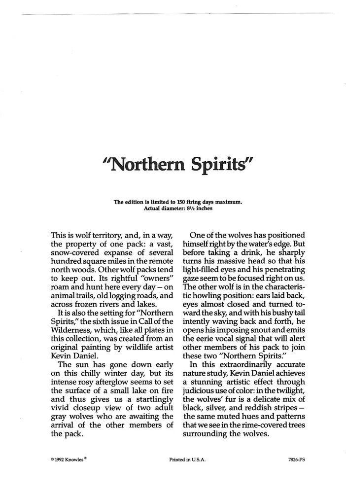 Northern Spirits, Call of the Wilderness # 6, Kevin Daniel, Edwin Knowles, 8.5"