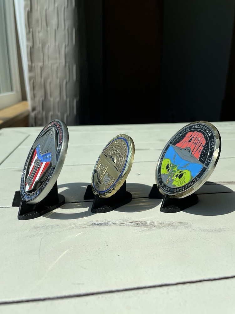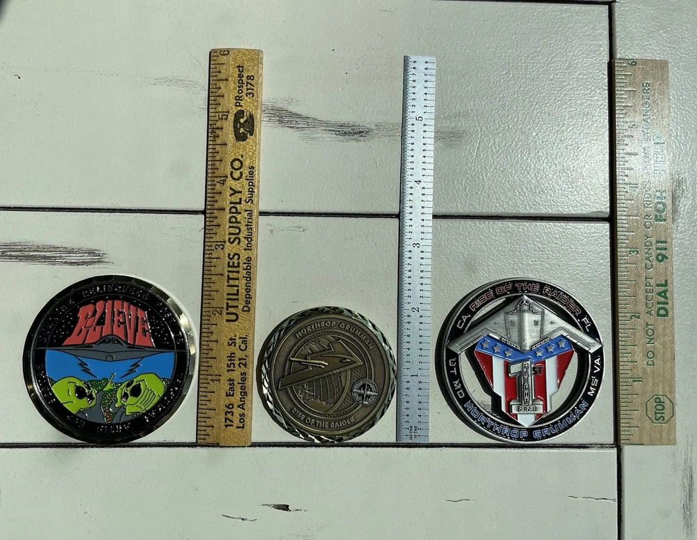Northrop Grumman B-21 Raider Bomber 3-piece Rare Challenge Coin set. THE PICTURES DON'T DO THESE COINS JUSTICE! EVEN MORE STRIKING IN PERSON! The aliens GLOW IN THE DARK You will receive (3) coins, (3) plastic sleeves, and (3) 3d printed display stands. Will ship using USPS Priority mail to the 48 continental United States ONLY. Will be packaged carefully and well protected! SIGNATURE REQUIRED UPON DELIVERY. NO SHIPPING TO P.O BOXES. Whiteman Air Force Base, B-21 Raider, Challenge Coin, LRS-B, B-52 Stratofortress, B-1B Lancer, Lockheed Martin, F-117 Nighthawk, F-14 Tomcat, F-15 Eagle, F-16 Falcon, F-18 Hornet, F-22 Raptor, F-35 Lightning, United States Air Force, USAF, Navy, USN, Army, Marines.