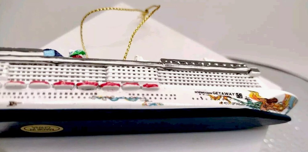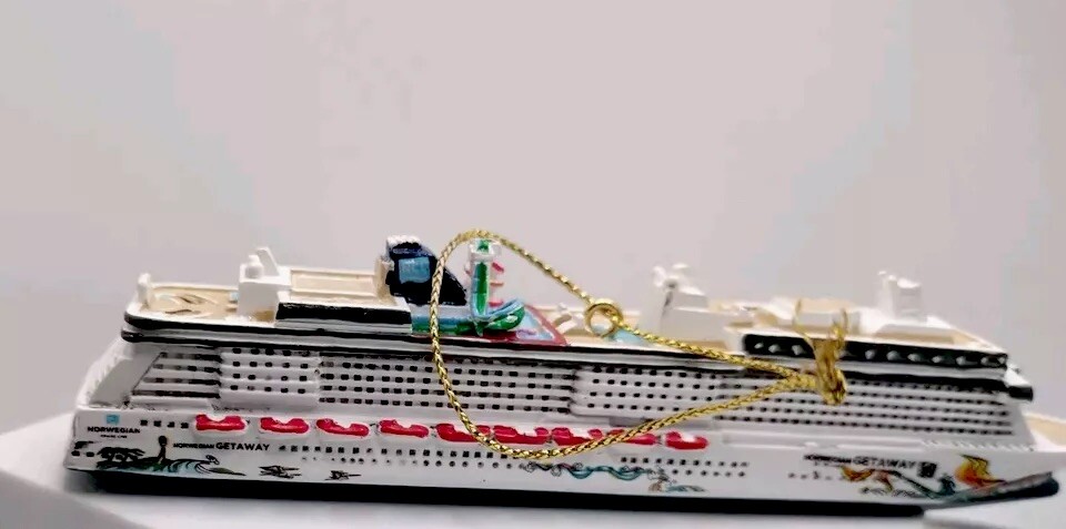 NCL Getaway Ship Ornament Christmas Holiday Gift Souvenir Collector Item 5.25" long x 1.25" tall x .75" wide We use our pictures as part of our condition and description on each item. This item may need to be polished or cleaned as we try to keep everything how we found the item. Combined shipping on orders is always available! *Props are not included, such as jewelry boxes, earring holders, ECT... **Please follow the Generations of Jewels store so that you are notified of new items!!!! ***No returns on International Sales!!! International Shipping will ONLY be through Global Shipping!!!!