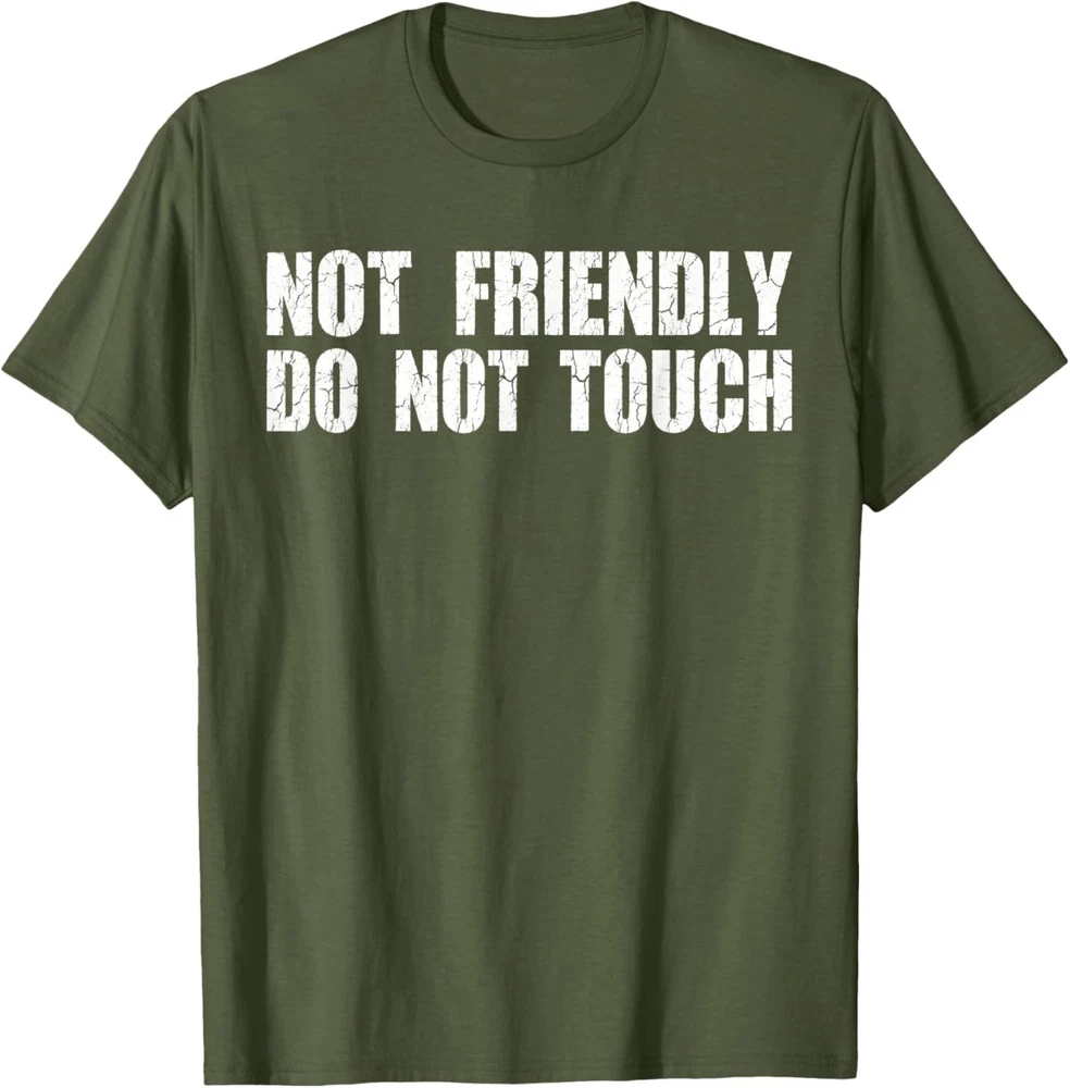 Not Friendly Don't Touch Funny Sarcastic Quote for Men T-Shirt About product: Unisex heavy cotton Solid colors are 100% cotton; Heather colors are 50% cotton, 50% polyester (Sport Grey is 90% cotton, 10% polyester); Classic Fit Preshrunk jersey knit Seamless double-needle 7/8" collar Taped neck and shoulders Tear away label Double-needle sleeve and bottom hems Quarter-turned to eliminate center crease All t-shirts are Unisex. Product Specifications - Please, check the image for a size chart. All measurements specified in inches. Body Length - t-shirts length, body-wide - t-shirts wide from armpit to armpit. Printed in the U.S.A. Shipping Handling time: 1-3 business days after payment, normally about 2 business days. Shipping times inside the US is 1- 5 business days, normally about 3 business days . Shipped by USPS and DHL . Business days exclude weekends and holidays . Replacement Policy: All Product are defective during shipping broken, chipped will be replaced free of charge. Before opening a return case on eBay, please contact us with the reason for return and send us a proof like a picture, it will be easier for us to handle your case. Thank you for your shopping with us !