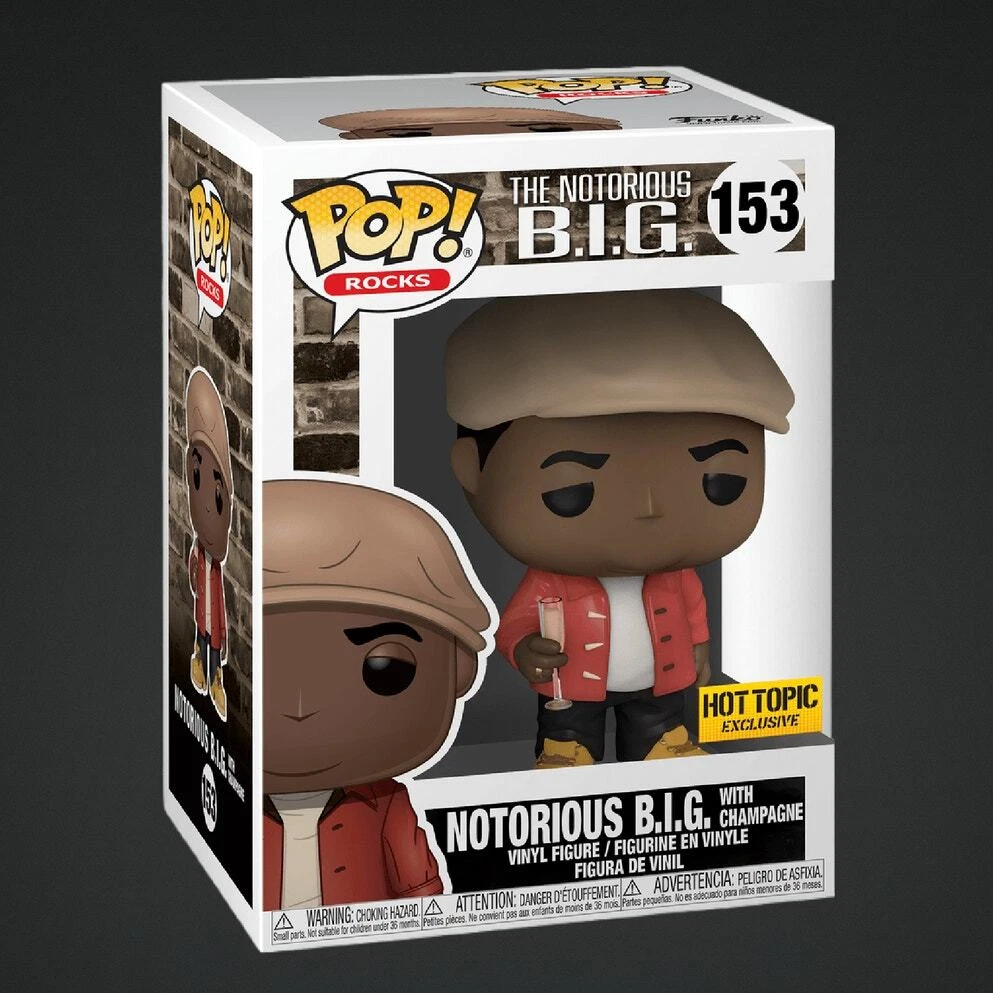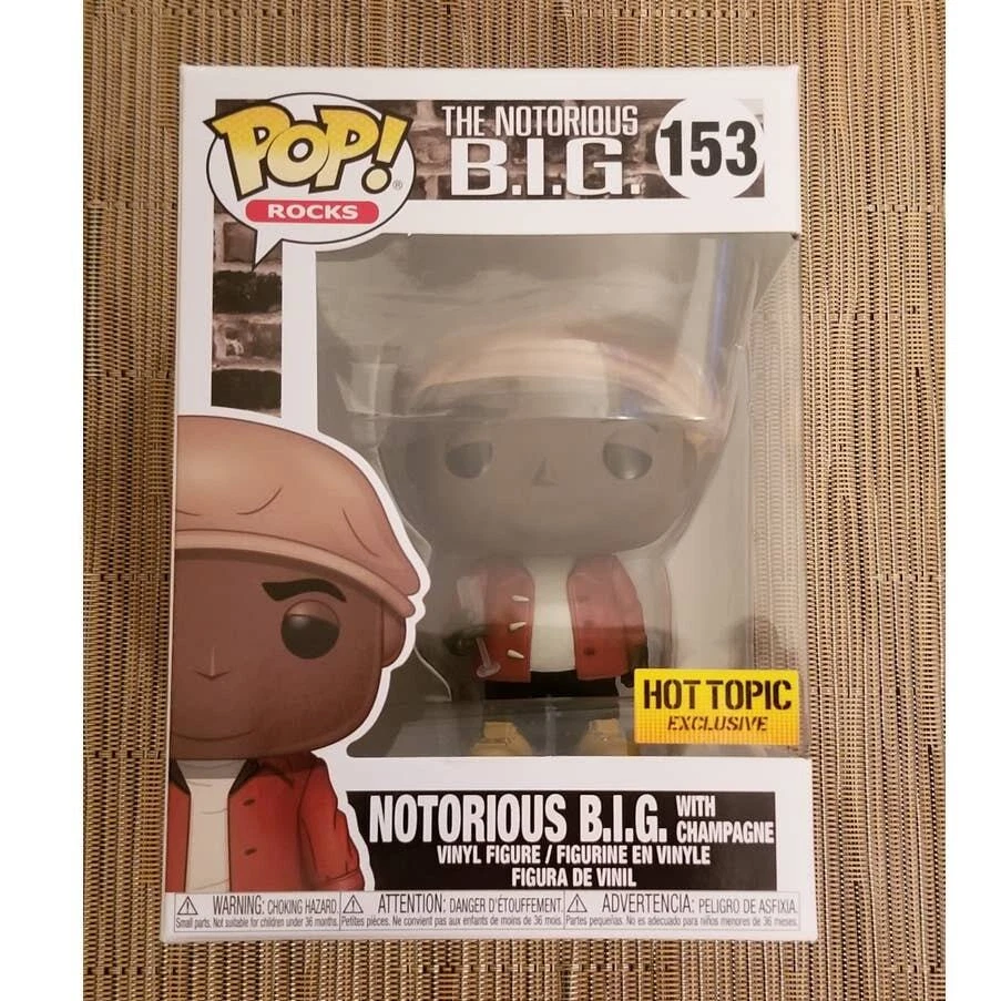 Notorious B.I.G. with Champagne Hot Topic Exclusive Funko Pop 153. In mint or near mint box condition. Please see all photos and judge condition for your self. Will ship fast and with care!