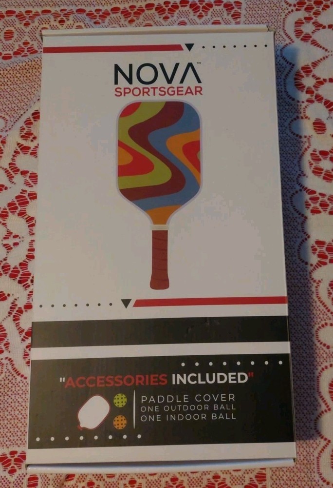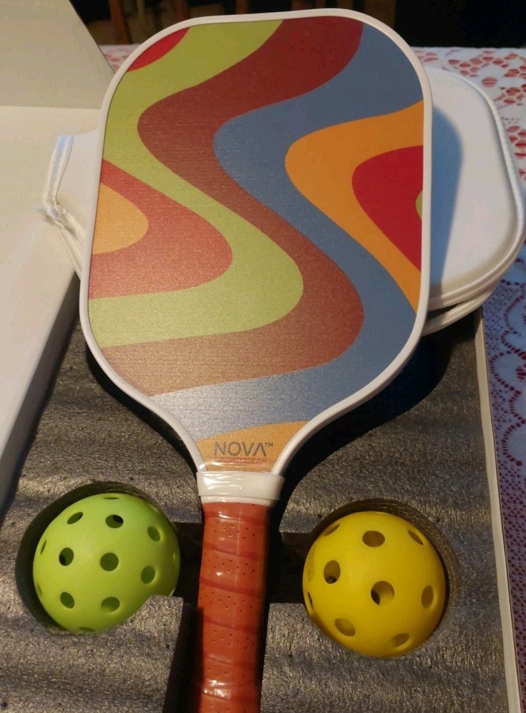This is a new opened box Nova Spotsgear Pickle Ball paddle, cover and 2 balls