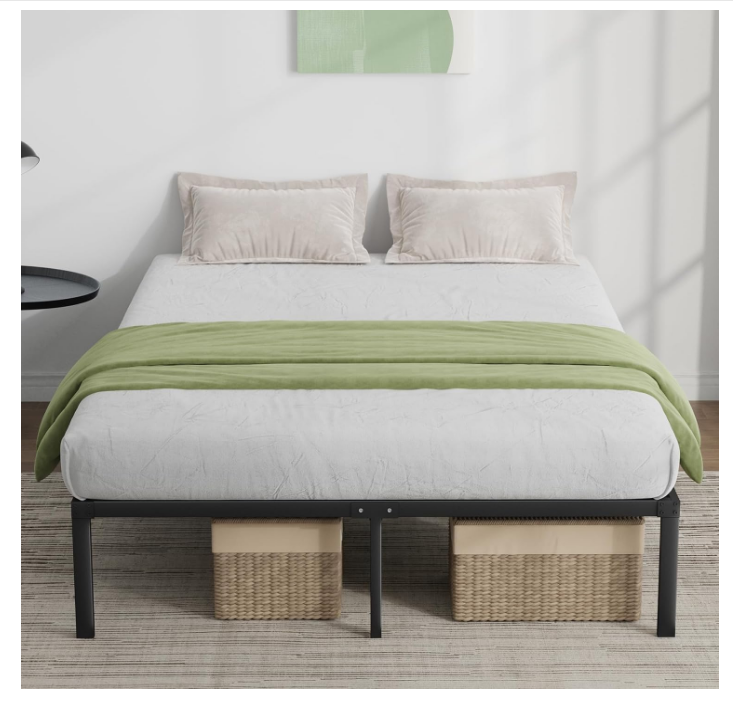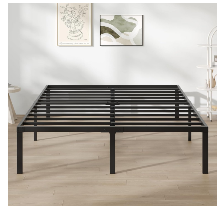 Novilla Queen Bed Frame, 14 Inch Metal Platform Bed Frame Queen Size No Box Spring Needed, Heavy Duty Steel Slat Support, Easy Assembly Size Queen Product Dimensions 79.92"L x 59.84"W x 14"H Special Feature No Box Spring Needed Color Black Finish Type Matte Frosted About this item Minimalism & Modernity: Minimalist styling for a fashion favorite which meets matte black design queen bed frame. Easy Assembly: The bed frame can be easily assembled by one person using a unique technique. Stability & Durability: The frame utilizes heavy-duty reinforced metal rods and metal legs slats to support the mattress, no box spring needed. Noise-Free: To make this bed frame squeak-free, due to an EVA cushion strip added to the sturdy metal support slats. Allowing Max weight capacity of 1200lbs. Under Bed Storage: This under bed storage provides an additional 12 inches of space and is easy to clean. . We offer FREE shipping on all orders! . We ship within Five business days of payment, usually sooner. . We use a selection of shipping services such as UPS, FedEx, USPS etc. . We only ship to the lower 48 states, no APO/FPO addresses or PO Boxes allowed. . Local pickups and combined shipping options are not provided at this time. . Your satisfaction is a wonderful reward for our efforts. Please assist us by leaving a positive review if you feel pleased with our service. . In the event that you encounter any difficulties related to your order, please do not hesitate to reach out to us directly through the Messaging system on the Ebay platform. Kindly consider opening a COMPLAINT or a RETURN REQUEST as a last resort, only after all other possible measures have been attempted and we have been unable to provide you with assistance. . We will get in touch with you within 24 hours and make every effort to ensure your satisfaction. . Please rest assured of our service quality.