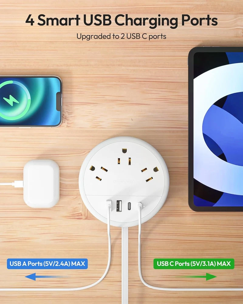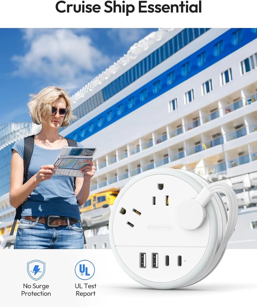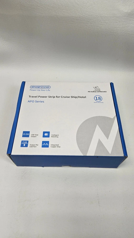 This listing is for one Nton Travel Powerstrip. The powerstrips are new and unused. Multiple Available Fast Shipping! 【Travel Power Strip with 2 USB C Ports】NTONPOWER flat plug extension cord added extra 2 USB C ports for the device, the USB C port can charge up to 5V/3.1A. 2 USB-A ports can charge up to 5V/2.4A Max. Note: All the USB ports output:15.5W max. This USB C travel power strip also helps get rid of your bulky adapters, it is a perfect home and travel accessories must haves. 【Charge 7 Devices Simultaneously】NTONPOWER flat extension cord has 3 AC outlets, 2 USB-C ports, and 2 USB-A ports. Max power: 1250W (125V-10A), which provides power and charging for up to 7 devices. This travel extension cord is the perfect choice for charging multiple devices while traveling or at home. 【Portable Power Strip】The travel power strip is designed as a carry-on compact size(4*4*0.9 in), with a 4ft flat extension cord that can be neatly wrapped around the power strip keeping it as thin and tidy. The portable power strip is small enough to carry around, and much more manageable in bags or luggage without taking up more space, The travel extension cord will become your great home essentials and travel accessories. 【Ultra Thin Flat Plug & Ultra Thin Flat Extension Cord 】1.With only a 0.31-inch ultra flat plug design, the upgraded flat wall plug is thinner than the regular flat plugs, which can easily fit in tight spots and hide behind the furniture. 2. flat plug groove design, comfortable to hold and easy to plug and unplug. 3. This flat extension cord is much thinner than standard round cable, allowing it to run smoothly under carpets and through door gaps. 【Cruise Ship Essentials】The NTONPOWER cruise power strip cruise approved comes with No surge protection, making it absolutely a cruise approved power strip. This travel extension cord with USB-C ports is Easy to carry and suitable for cruise ships, hotels, and airports where there are unreachable outlets.
