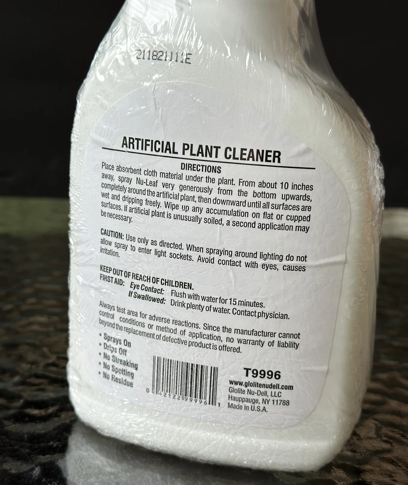 Keep your artificial trees and silk plants looking fresh with the Nu-Leaf Cleaner Spray. This easy-to-use cleaner is perfect for maintaining the appearance of your decorative plants without the hassle of rinsing or wiping. Spray the cleaner evenly over the leaves of your plant to remove dust and dirt that can accumulate over time. This product is ideal for use in any home or garden setting and is perfect for those who want to maintain the beauty of their plants without the need for harsh chemicals.