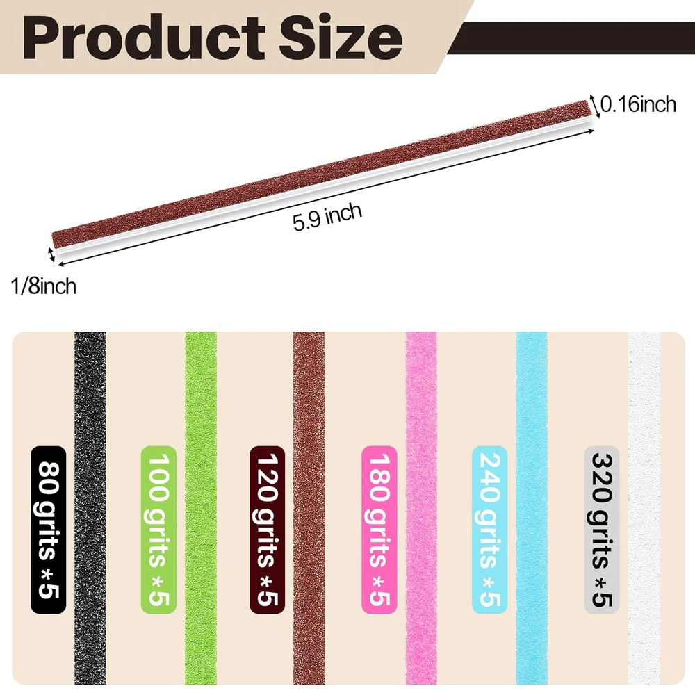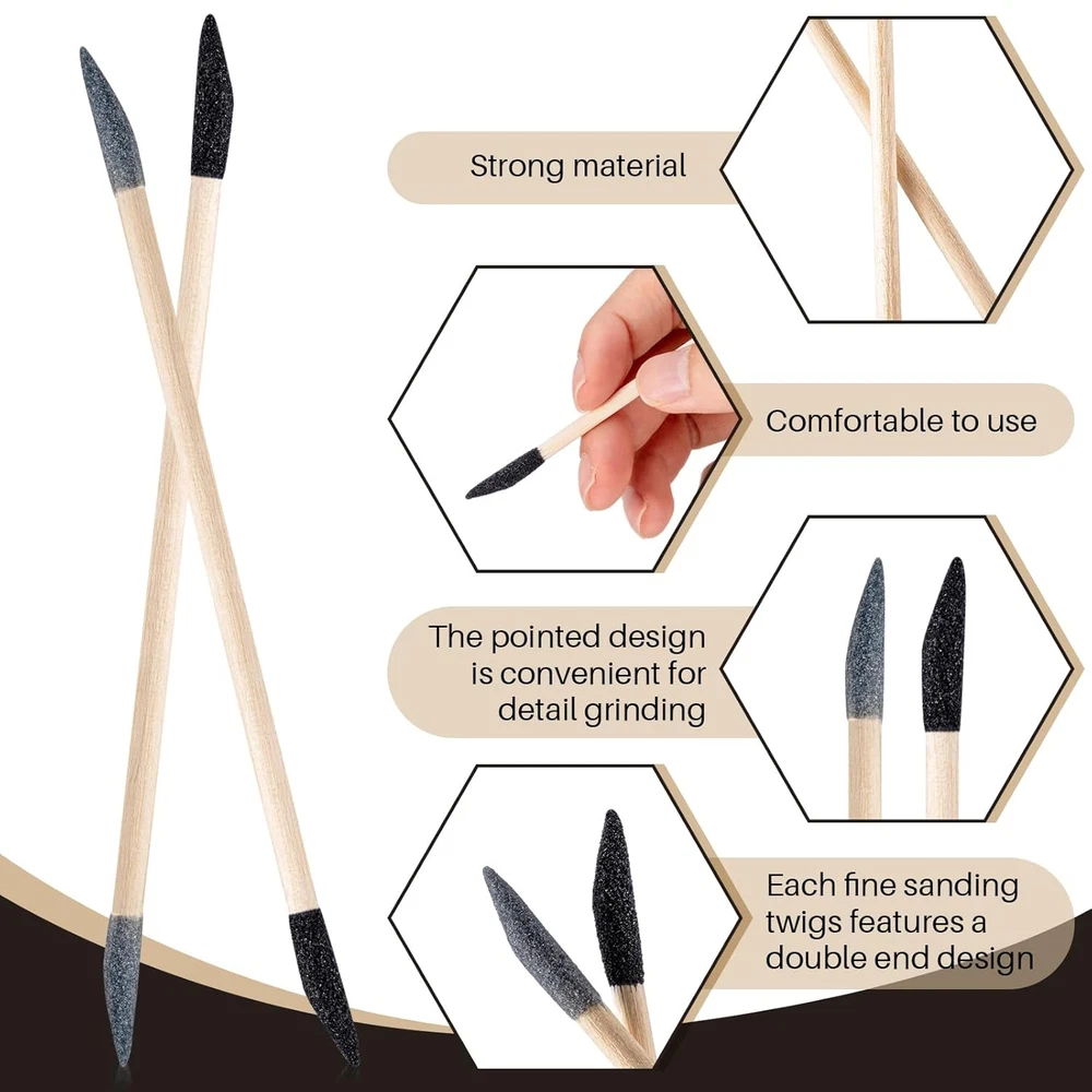 Nuanchu 60 Pcs Detail Sanding Sticks Tiny Sanding Sticks for Plastic Models Micro Polishing Sticks for Wood Art Sanding Strips for Tight Spaces Matchsticks Sanding Accessory for Metal Model Craft Product Details Package Dimensions : 7.09 x 7.05 x 0.79 inches; 4.97 ounces Manufacturer : Nuanchu Material: Wood Grit Material: Aluminum Oxide, Silicon Carbide Brand: Nuanchu Grit Type: Medium, Fine, Very Fine, Extra Fine Compatible Material: Metals, Woods, Plastics, Stones, Composites You Will Get: 30 double-ended sanding rods (120, 280 grit) and 30 thin sanding sticks (80, 100, 120, 180, 240, 320 grit) Thoughtful Design: the double-ended sanding sticks are designed in the shape of a matchstick with an inclined head, which can achieve precise sanding of hard-to-reach small gaps, areas with more details or narrow spaces; Each grit of the fine sanding sticks is a different color for easy distinction General Functions: these scale model tools for plastic models have a flexible stretching range and a complete grit size range, which can be widely applied in plastic models, wood grinding, auto parts, house decoration and any objects you want to polish Long Service Life: these assorted crevice sanding tool accessories are made of wood, sturdy and safe, the double-headed and double-sided design enables them to be applied for a longer time, and can easily enter any small space, suitable for wet and dry polishing Improve Work Efficiency: featuring clear grit rating, this wood bleaching kit is easy to use, makes handmade products faster, and improves work efficiency, which is fascinated by amateurs and beginner Features: Never confuse the two sanding rods, the grit of each of our contour sanding grip is distinguished by color for easy identification, helping you easily choose the right tool, thus simplifying your workflow. You can use these sanding tools for tight spaces at home, in workshops, hobby shops, etc. They are suitable for almost any small object that needs polishing details. You can also give them to your family and friends who love handicrafts around you, which will be a good gift for them. Specifications: Material: wood Color: as pictures show Size: 5.9×0.16×0.125 inches/14.99×0.41×0.32 cm Double-ended sanding sticks: about 5.4 inches/ 13.72 cm long Fine sanding sticks: 5.9×0.16×0.125 inches/ 14.99×0.41×0.32 cm Package includes: 30 x Double-end sanding sticks 30 x Fine sanding sticks Notes: Manual measurement, please allow slight errors on size. The color may exist a slight difference due to different screen displays.