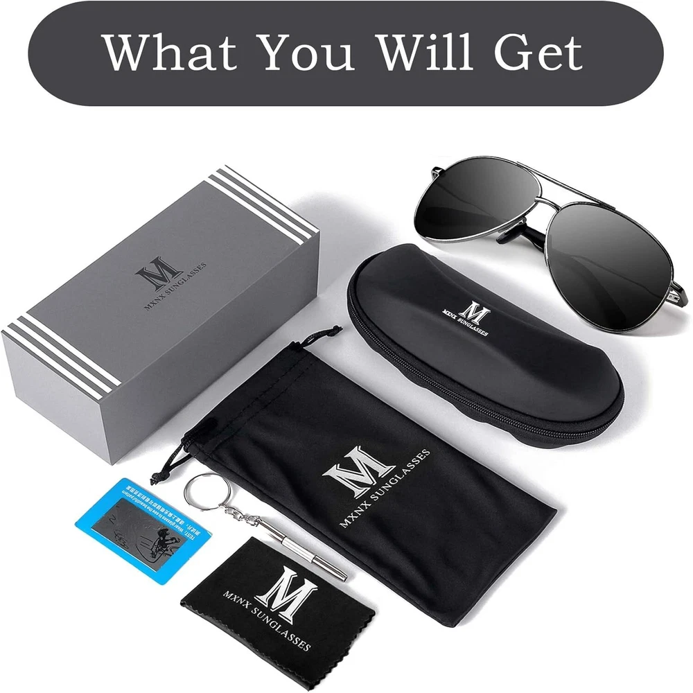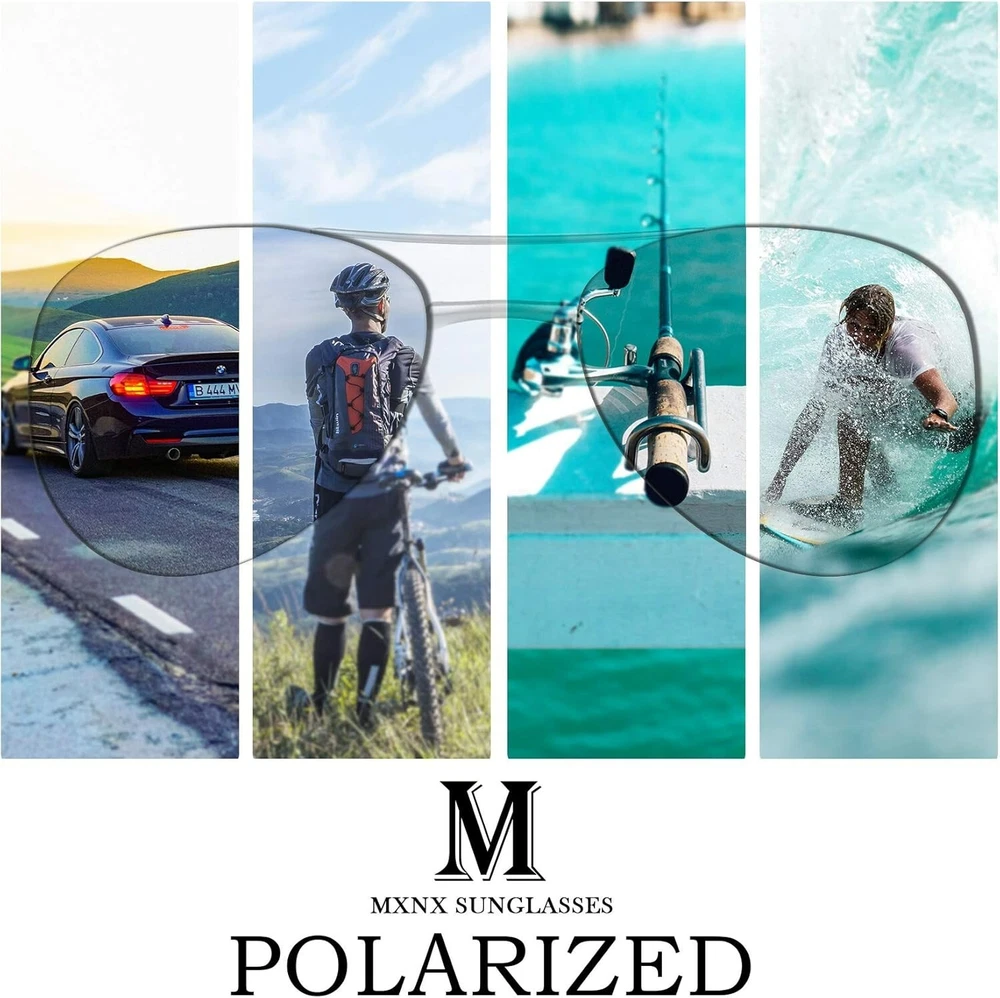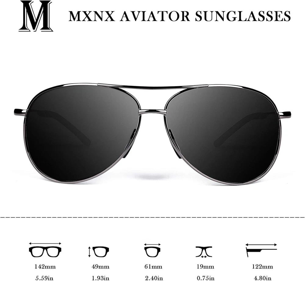 POLARIZED LENS - UV400 eye protection effectively filter and block glares to protecting your eyes against UV damage and keeping your eyes healthy;The aviator sunglasses designed for driving fishing and all outdoor activities;Definition lens gives you a natural and clear vision: restore true color ALLOY FRAME - The polarized aviator sunglasses made with aluminum magnesium metallic alloy that is ultra light weight. It comes with spring loaded hinged legs and adjustable silicon nose pads which allows for maximum comfort and flexibility SUITABLE - Being polarized and 400UV protection makes these sunglasses the choice for outdoor sports and activities such as driving, fishing, golf,skiing, travelling, hiking, boating, and is suitable as fashion accessory and daily wear all year round. It is also a wonderful and practical choice for friends and family CLASSIC AVIATOR STYLE - Unisex Aviator style suitable for all outdoor activities and any occasion.These aviator sunglasses is suitable for any face,fashion design show your unique Taste CUSTOMER SERVICE - Customer service that satisfies every customer,If you have any questions about MXNX sunglasses, you can approach our seller until we help you solve the problem