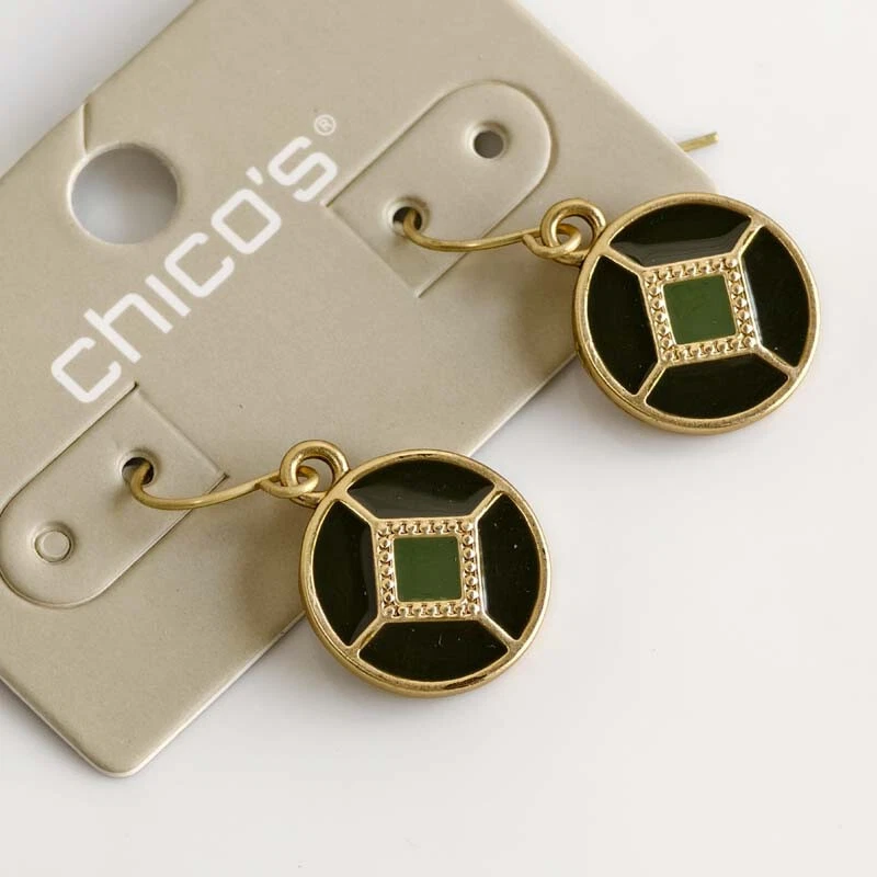 View more great items New Chicos Matte Gold Tone Enamel Round Drop Earrings Gift Fashion Women Party Holiday Jewelry Description: The listing is for 1pairs new chicos matte gold tone enamel round flakes drop dangle earrings. Size: about 2.9cmx1.5cm Condition: New with tag The color is matte gold+black+olive. Payment: We only accept paypal. It is fast and safe, we strongly recommend the payment method to you. We reserve the right to file Non-Paying Bidder if payment is not received 7 days after the auction ended. Shipping: Orders are usually shipped out within 2 business days (mostly within 24hrs).The EAT is 7-15 business days. We don't ship the PO, FPO, APO address, pls supply a physical address with your phone# or mobile phone#. Country Expecting Arrival Time USA / UK / Australia 7-14 working days(10-20 days) Canada 7-21 working days Brazil / South America may take up to 6-8 weeks due to strict Custom Inspection Italy / France / Spain / Germany/ Eastern Europe may take up to 6-8 weeks due to strict Custom Inspection Pls contact us, if you have an urgent shipment. We don't combine the shipment. We only charge shiping fee, don't charge any handling fee. Return: We are in China. Ebay will show the location clearly when you buy. If you need to return any items, it need to return to our China address. We ship the items via the speedPak according to ebay's request. The speedPak will offer its tracking# when we ship the items. But the tracking will be change to USPS tracking# when the items arrive in USA. Pls note it. Brand new If merchandise is defective we will replace a new one for you, no refunds or credits. Defective situation must be reported to seller within 30 days upon receipt. Shipping insurance are not refundable in any case Buyer bears all shipping charges. Warranty: Brand new with no scratches. Perfect gift Professional packing, Good protection Double quality check for each item Ship by air mail without the tracking number Serious full time seller, serve you 24 hour from Monday to Saturday No Import Tax or Sales Tax, Unbelievable Low Price Reply your questions in 24 hours ATTENTION: Please read the item descriptions and shipping cost before placing a bid. Track Page Views With Auctiva's FREE Counter