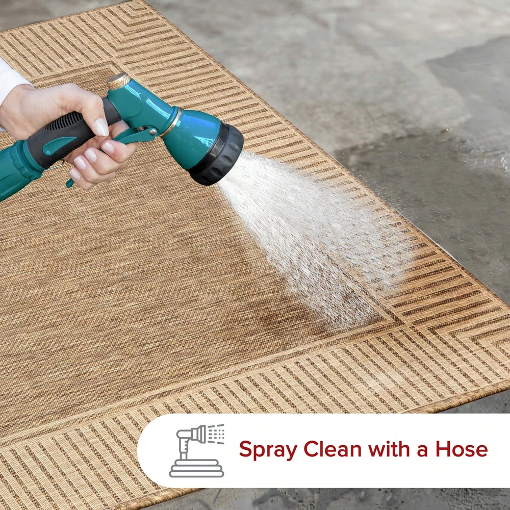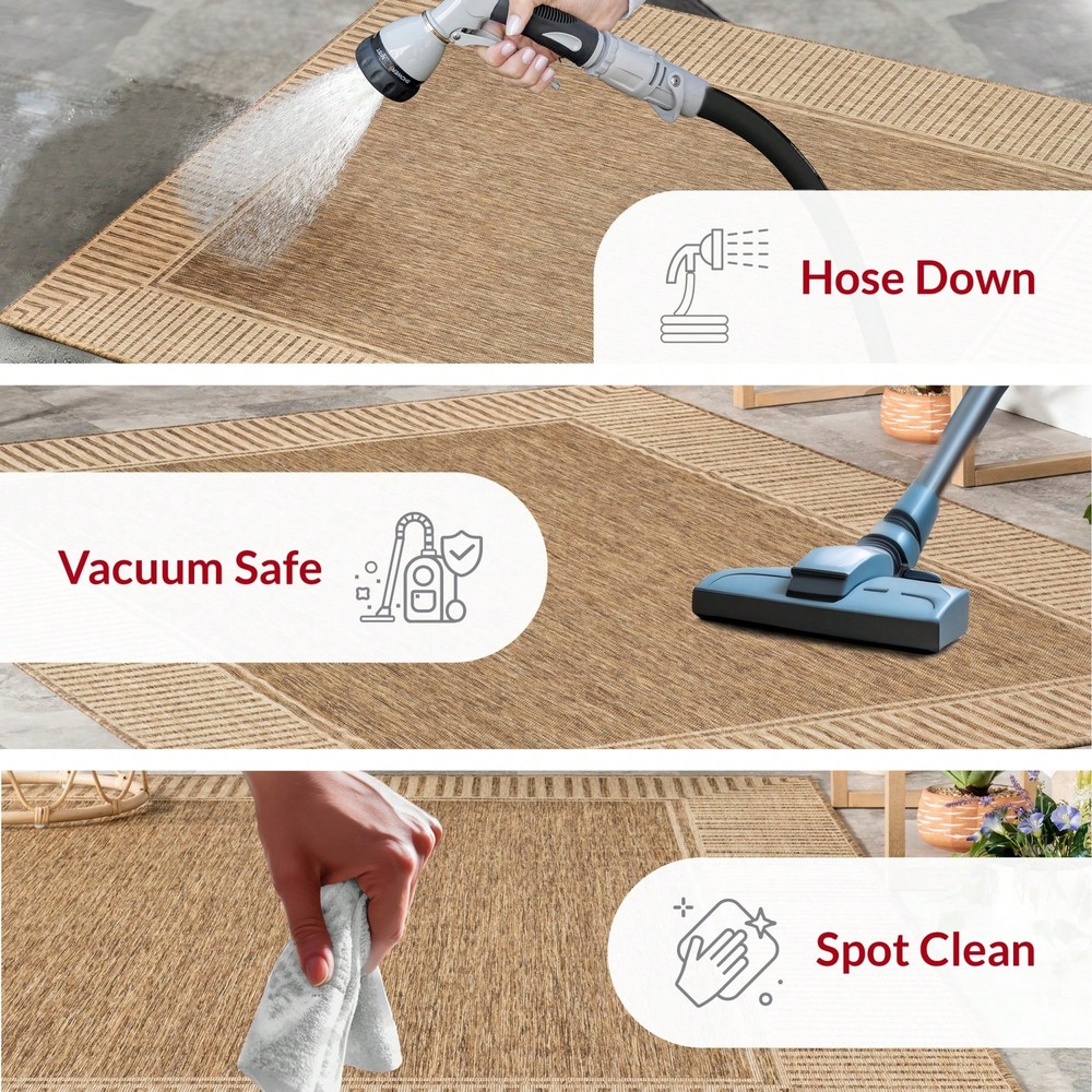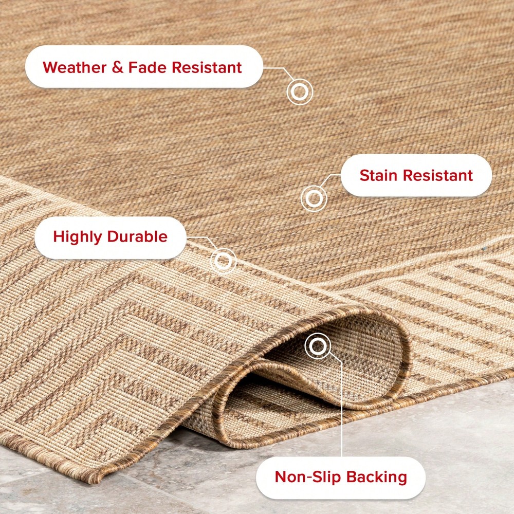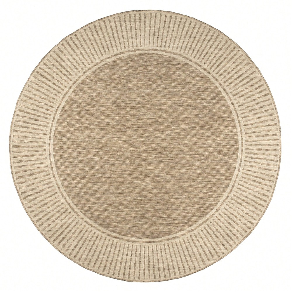 Whoever said beautiful floor accents are only for inside the home hasn't yet met an indoor/outdoor area rug. This casual rug will warm up any space with its simple yet beautiful striped border. Made from durable fibers that are perfect for any high traffic areas and will last for years to come. Kick back and relax with our easy to care for and pet-friendly area rugs. Style: Modern, Scandinavian Color: Khaki Shape: Round Type: Area Rugs Care Instructions: Spot Clean Pile Height: Medium Pile (1.2-2.5cm) Machine Washable: No Composition: 100% Polyester