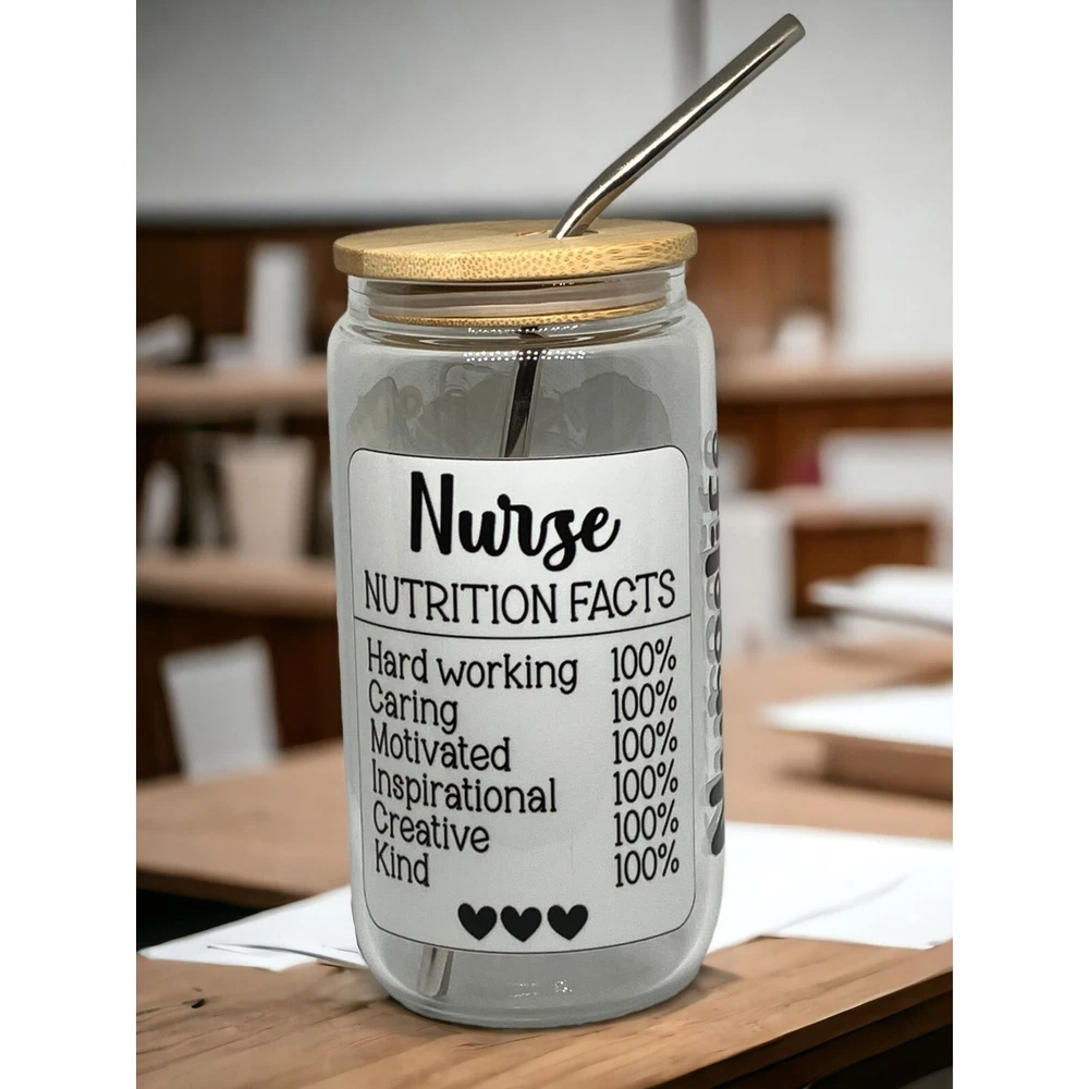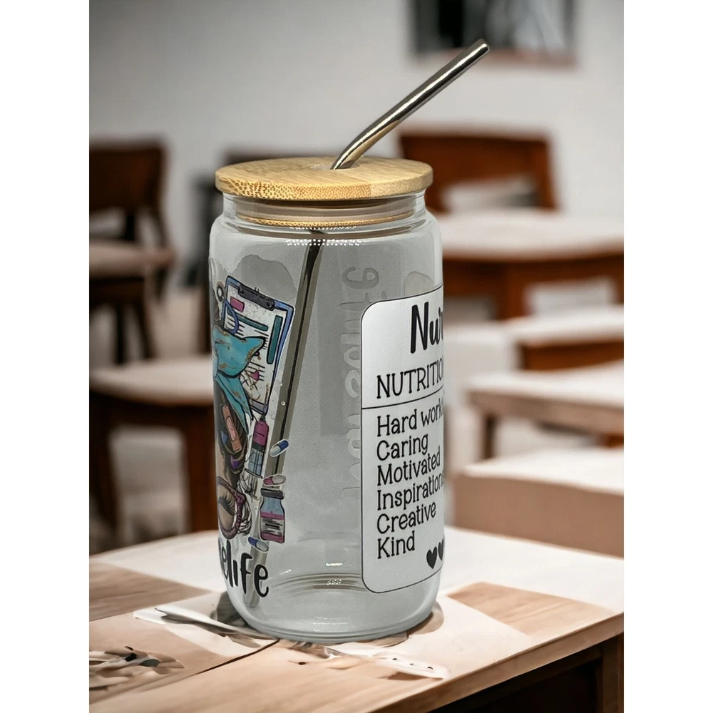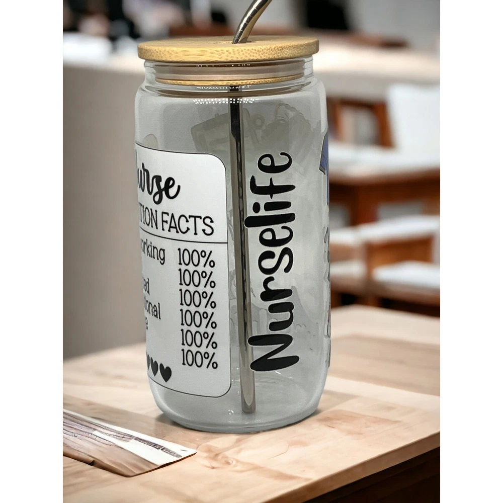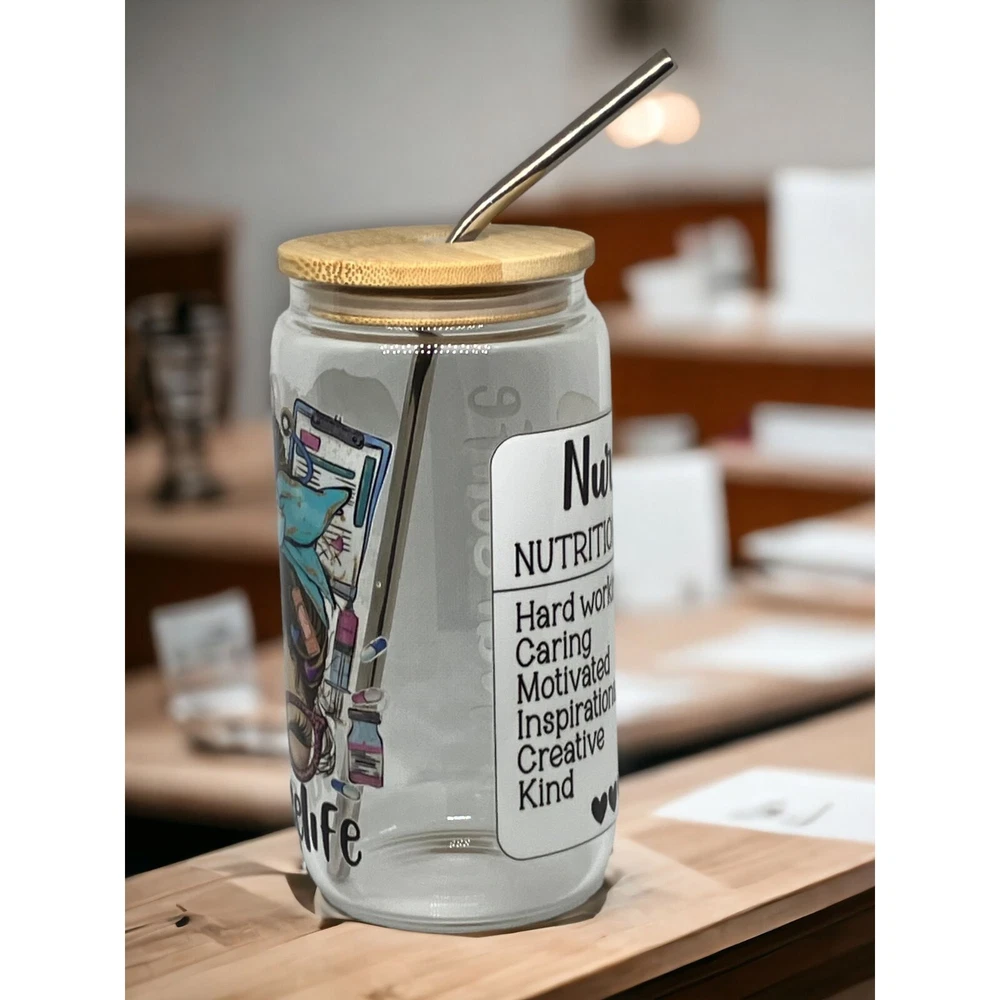 This three-piece glass can set is a perfect gift for nurses and a great addition to any glassware collection. The 16oz capacity and round design make it suitable for all occasions. The glass can is made of high-quality glass material and comes with a lid and reusable straw. The "Nurse Life" theme and character design adds a touch of novelty to the glass can. The straight shape and modern style of the glass can make it a great choice for adults and girls. Hand wash is recommended for care instructions. The glass can set does not come with any manufacturer warranty.