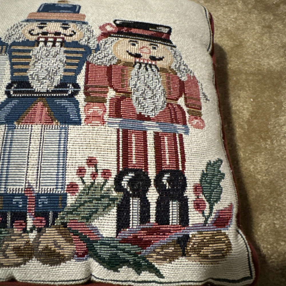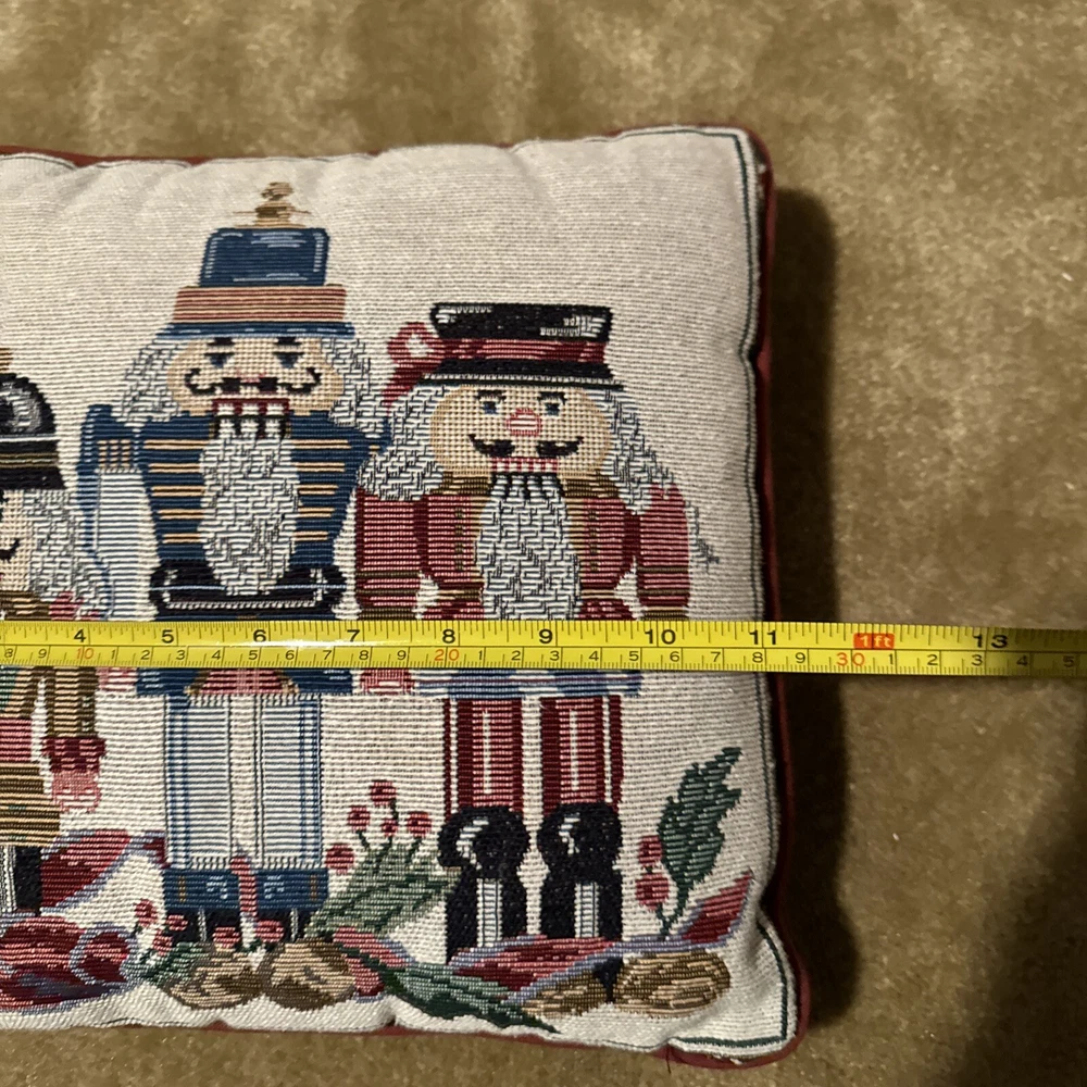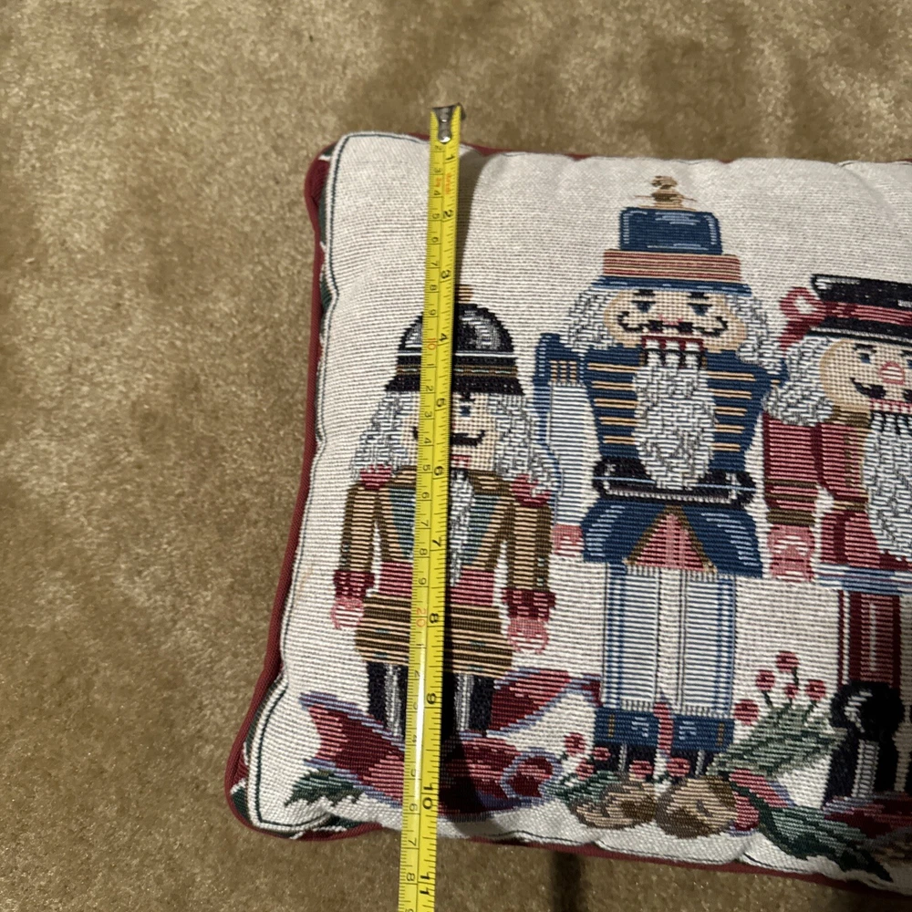 Nutcracker Embroidered Throw Accent Pillow Christmas Decor. It is in great vintage preowned conditions. Some free home. Normal wear associated age. Sold as is. Price accordingly. Please look over carefully and inspect any and all photos. Please review all of the photos because they are integral to the item description process. This is a vintage item, it may have minor flaws that I may have overlooked. Please see pictures for a more detailed description and measurements. Some pictures are enlarged to show detail. Please let me know if you have any questions. Thank you so much for stopping by.