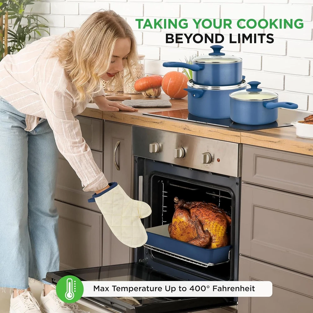 TEMPERED GLASS LIDS - Enhance your cooking visibility with see-through tempered glass lids with steam vents. These lids trap heat for efficient cooking, while steam vents allow for necessary steam release. Monitor your culinary without lifting the cover, ensuring optimal results every time. MULTI-SIZED COOKING POTS - Unleash culinary creativity with our variety of multi-sized pots, pans and included steamers. Whether a small, intimate meal or preparing a feast for a crowd, our cookware set ensures every dish is cooked to perfection. Elevate every meal effortlessly. CERAMIC NON-STICK COATING - Enjoy easy-clean non-stick performance with NutriChef’s durable, ceramic coated everyday cookware. Cool- handles elevate your precision and control in the kitchen, with form-fitting handle grips that provide a secure hold and reduce the risk of burns. COMPLETE KITCHENWARE SET - Consider your kitchen fully equipped, with Nutrichef’s 54 piece complete cookware set. Our kitchen kit contains everything you’ll need for food prep, from pots and pans with lids, a complete bakeware set, heat resistant kitchen utensils, 5 premium kitchen knives, cutting boards and other assorted kitchen tools and textiles. On Dec 15, 2024 at 18:42:58 PST, seller added the following information: