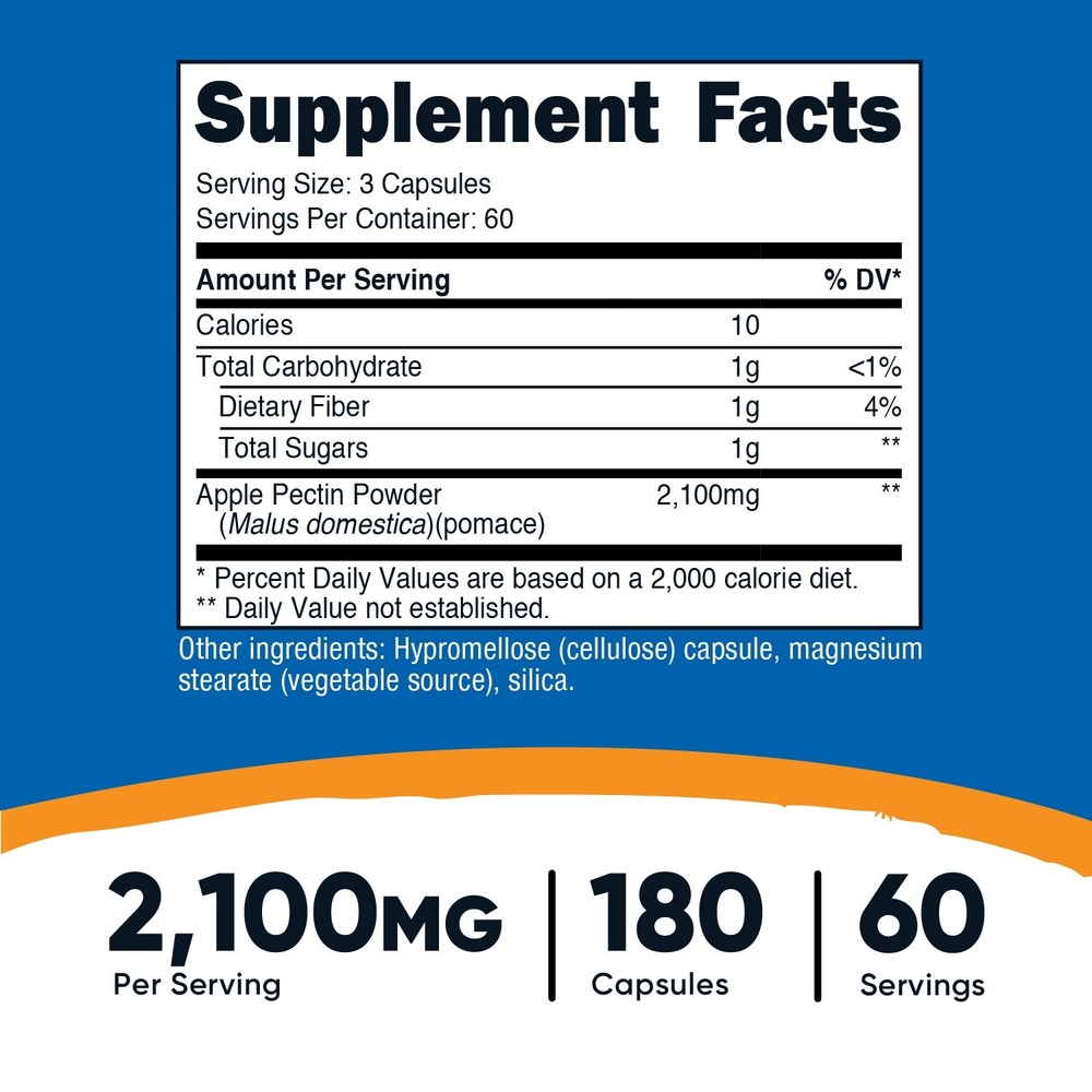 Nutricost Apple Pectin Capsules 2,100mg Per Serving, 180 capsules, 60 Servings - Gluten-Free Nutricost Apple Pectin Capsules 2,100mg Per Serving: Each serving delivers 2,100mg of high-quality apple pectin for optimal digestive support. 180 Capsules: This bottle contains 180 capsules, providing you with a 30-day supply. 60 Servings: Enjoy 60 servings per container, offering great value and convenience. GMO-Free, Gluten-Free & Vegan: This product is free from GMOs, gluten, and animal products, making it suitable for a variety of diets. Manufactured in a GMP Compliant, NSF Certified Facility – Produced in a GMP compliant, NSF certified facility. Q. Is there a return policy? A. We offer a 30 day money back guarantee from the time of purchase. Only Unopened products in resalable condition will receive a full refund of the product sale price. Customer is responsible for shipping costs. Up to 1 opened product may also be accepted for a refund. Please contact our customer service department using your eBay message system for more information or instructions on how to return your product. Q. What are your shipping rates for the US? A. Shipping & Handling Domestic: We offer FAST 2-5 day Free Shipping as well as other options Q. Do you ship international? A. We offer fast shipping to many other countries. Please see price at check-out since prices may vary by location and quantity. International customers (anyone outside the U.S. - including Canada & US protectorates) should be aware of and are responsible for all additional fees associated with duties, taxes, customs, and other costs incurred from shipping internationally. Your purchase includes courier fees only ***Please be aware it is against U.S. Law to underestimate the value of your package on the customs form. ***Please be aware we will not refund any international package that is refused. These additional costs vary depending on your location. Please refer to your local customs office to estimate these fees. ***Attention Alaska & Hawaii Customers Shipping may take up to 4-6 Business days