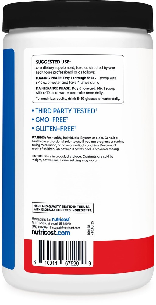 Nutricost Creatine Monohydrate Powder (Fruit Punch, 500 Gram (Pack of 1), Red Description Features: Delicious Flavors or Unflavored Creatine Available Micronized Creatine Monohydrate Promote Strength and Endurance Serving Size: 1 Scoop (Included) Made in a NSF Certified, GMP Compliant, FDA Registered Facility Product Details: Handling We will ship all orders within 1 business day of payment. Delivery We Do Not Ship Outside of the Continental US. Return Policy All items qualify for returns within 30 days of receipt. Buyer is responsible for return shipping on any item that is not damaged. Feedback We take our reputation seriously, we buy and sell online, so we understand the value of trust. If you are unsatisfied with your order, please contact us and we will work with you to resolve it to your satisfaction.