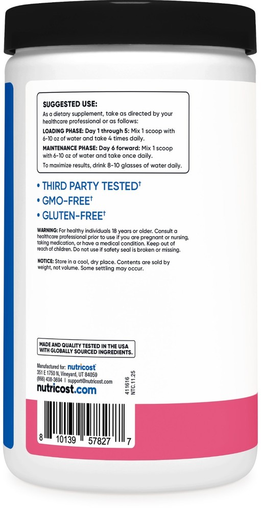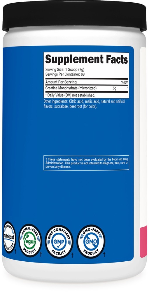 Nutricost Creatine Monohydrate Powder (Sour Watermelon, 500 Gram) - Micronized Creatine Supplement, Vegan, GMO-Free, Gluten-Free, 68 Servings Micronized Creatine Monohydrate by Nutricost Features micronized creatine monohydrate in bold Sour Watermelon flavor Includes 500 grams of creatine powder per bottle Provides 5 grams of creatine monohydrate per serving with an easy-to-use scoop Ideal for use before, during, or after workouts Manufactured in an NSF Certified, GMP Compliant, FDA Registered Facility Nutricost Creatine Monohydrate Powder brings a refreshing twist to a classic supplement with its bold Sour Watermelon flavor. The micronized creatine blends smoothly with liquids, making it easy to add to your daily beverages without gritty texture. Each bottle contains 500 grams of powder, offering approximately 68 servings, and includes a convenient 5-gram scoop to keep measuring simple and consistent. This flavored creatine powder offers flexibility in how and when you choose to enjoy it, whether mixed on its own or combined with other favorite drink mixes. It also aligns with a variety of dietary preferences, as it is vegan, gluten-free, and made with GMO-free ingredients. Designed with both convenience and taste in mind, Nutricost Creatine Monohydrate makes it easy to incorporate creatine into everyday routines. Q & A Q. How should I take Creatine Monohydrate? A. During the loading phase day 1 through 5, take 1 scoop four times daily. During the maintenance phase from day 6 forward, take 1 scoop daily. For best results, consume 1 scoop with 6-10 ounces of water. Drink 8-10 glasses of water daily. Q. Will Creatine Monohydrate cause any side effects? A. Creatine is a combination of three natural amino acids and is found within the body. When used as directed, Creatine Monohydrate does not typically cause negative side effects. When taken in excessive doses, it may cause stomach pain, nausea, diarrhea, and muscle cramping. Talk with your health-care professional to see if creatine is right for you. Q. Are there any warnings associated with this product? A. Do not exceed the recommended dosage. Despite being clinically proven to be safe, creatine, like many substances can be harmful if too much is consumed. Other than that, there is nothing to worry about when taking this product however you should always consult with your health care professional if you have any questions about the use of this product or any other supplement. Q. How fast will I see results? A. Everyone’s body is different. Some may see results in as little as a few days, while others will see results in a week or more or so. If you have an active workout regimen and solid diet, you will most likely see results faster. Q. What are your shipping rates for the US? A. Shipping & Handling Domestic: Fast 2-5 business days shipping is 100% FREE Q. What are your international shipping rates? A. Shipping & Handling International: Expedited shipping is available for most countries. Rates may vary based on location and quantity. International customers (anyone outside the U.S. - including Canada & US protectorates) should be aware of and are responsible for all additional fees associated with duties, taxes, customs, and other costs incurred from shipping internationally. Your purchase includes courier fees only ***Please be aware it is against U.S. Law to underestimate the value of your package on the customs form. ***Please be aware we will not refund any international package that is refused. These additional costs vary depending on your location. Please refer to your local customs office to estimate these fees. ***Attention Alaska & Hawaii Customers Shipping may take up to 4-6 Business days