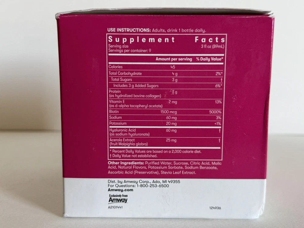 Nutrilite Collagen Shot Natural Cherry Berry Hyaluronic Acid & Acerola 9x3fl oz. Expire:9/2025