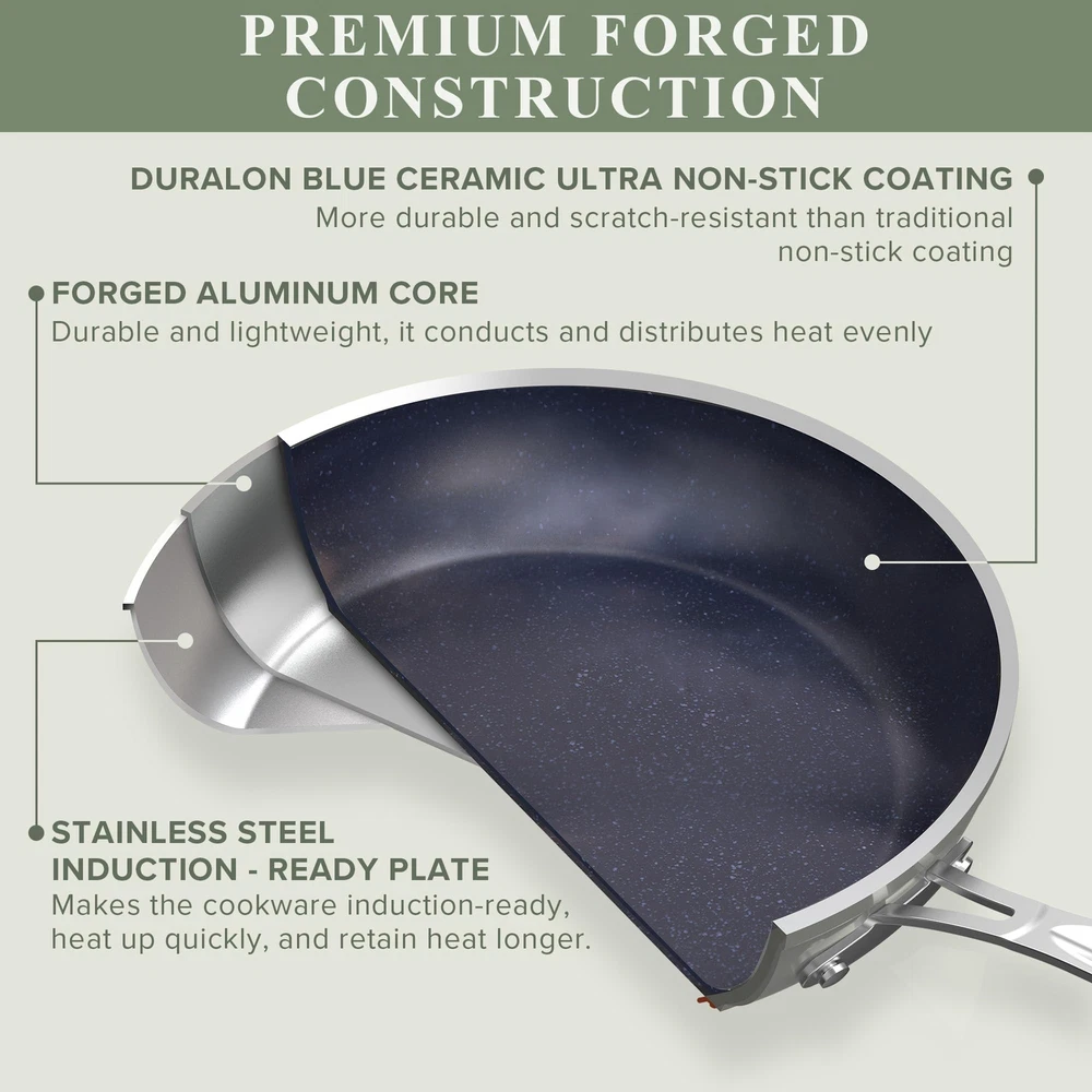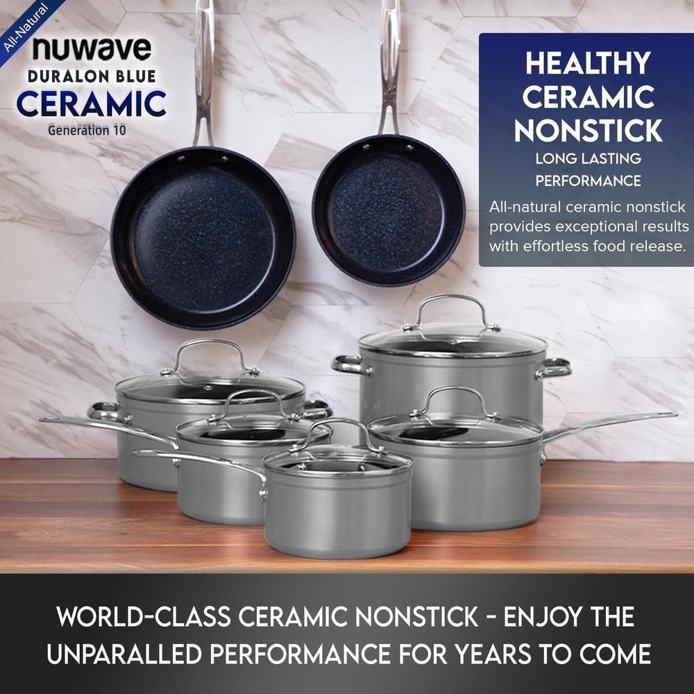 Nuwave Duralon Blue Ceramic Nonstick Cookware Set, Diamond Scratch-Resistant