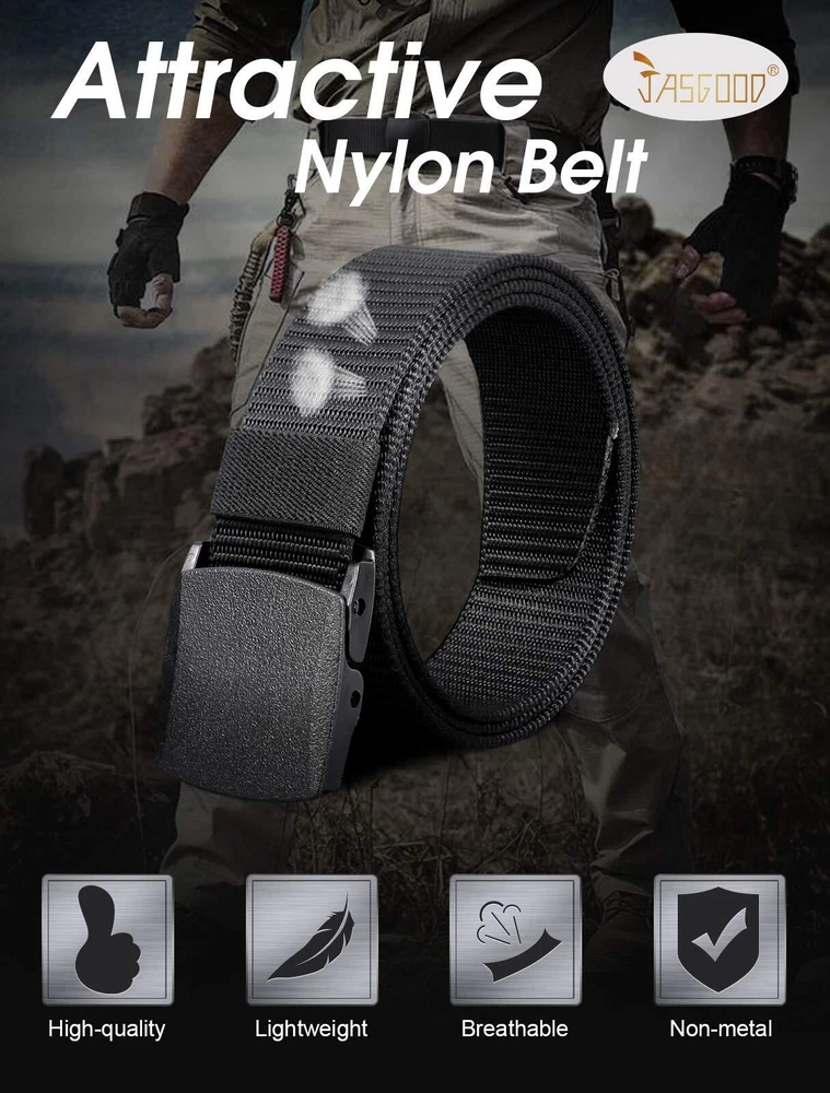 About us is a registered trademark. We do want to provide the best products and service to our customers. Here, We believe you can always find a satisfaction product suit for you! We wish you will have a comfortable shopping experience on our store! Product Features: The Maximum suitable pant size is 45 inches. Material: Canvas, Buckle Width:4.5CM(1.8"); Buckle Length: 5.2 cm(2 Inch). Size(Approx):Total Length(not included buckle):135cm(53.1 Inch); Strap Width:3.8CM(1.5"). When first time use, this nylon belt buckle maybe a little tight for you. After several times uses, it will be OK. This kind of design is to make the belt be more strong for everyone. If you have any questions, please do email us. We will reply you within 12 hours. Awesome casual accessory for indoor and outdoor activities. This is a high quality durable, strong canvas belt with a classic timeless design. This soft and supple canvas belt features unique appeal for you Package include: 1 x belt Shipment Notice We guarantee the quality of our products, but sometimes because of the different display color factors and shooting when ambient light and other factors, so in a sense of color and material will be slightly different , We hope you can understand. Feedback If you are satisfied with our service, please leave us a feedback. Your recognition will make us more confident to develop business and serve you better. Thank you! This military belt makes with lightweight and wear-resisting nylon material that has a strong evaporation of sweat, more comfortable and breathable, feel more flexible, easy to dry in air.Perfect for summer wear It's suitable for pant size below 40 inches. The total length is 120cm(47.2Inch), strap width is 3.8 cm(1.5 Inch). Buckle length: 5.2 cm(2 Inch), Buckle Width:4.5cm(1.8 Inch). Fully Adjustable.You can precisely adjust your belt to the perfect fit. Removable automatic Buckle,no holes in belt.If the Strap is too long for you, you can trim the strap length to fit your size. Nickel free international standard plastic buckle, feel comfortable and easy to wear. Non-metallic buckle for easy, quick clearance at security checkpoints. Especially suitable for metal allergy to wear, not easy to crack and breakage Not only used for daily wearing, but also a good partner for outdoors sports ,hunting and shooting,etc.It’s also a nice gift for men,husband,boyfriend,father,son and friends as Valentine’s day gift,Thanksgiving gift, Christmas gift and New Year gift.