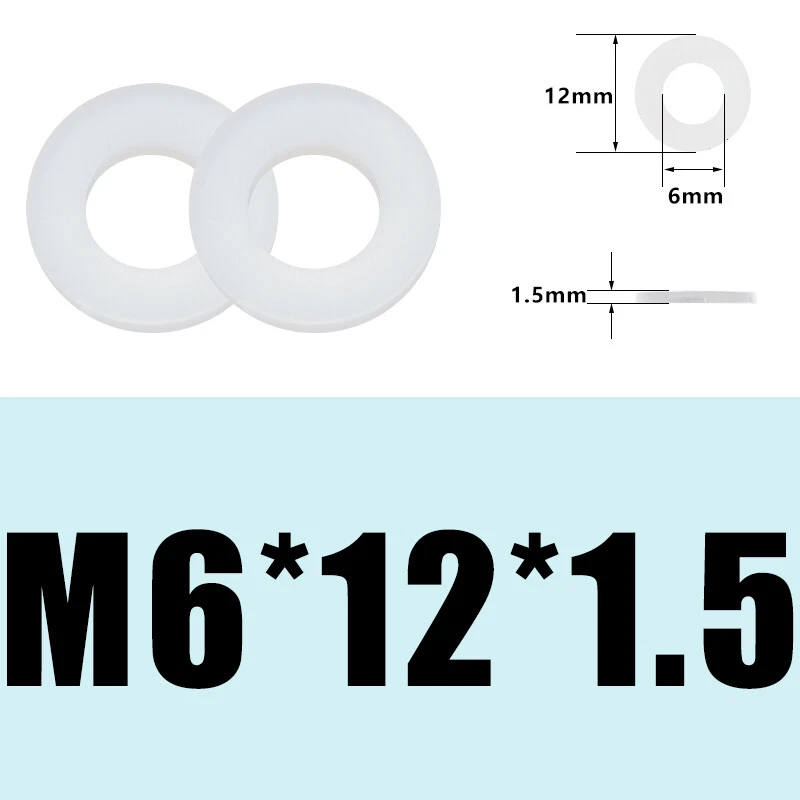 Brand: Unbranded MPN: Does not apply System of Measurement: Metric Thread Size: M2/M3/M4/M5/M6/M8/M10/M12 Item Thickness: 1mm~2mm Type: Nylon Flat Washers Country/Region of Manufacture: China Head Style: Round Shape: Round Material: Nylon