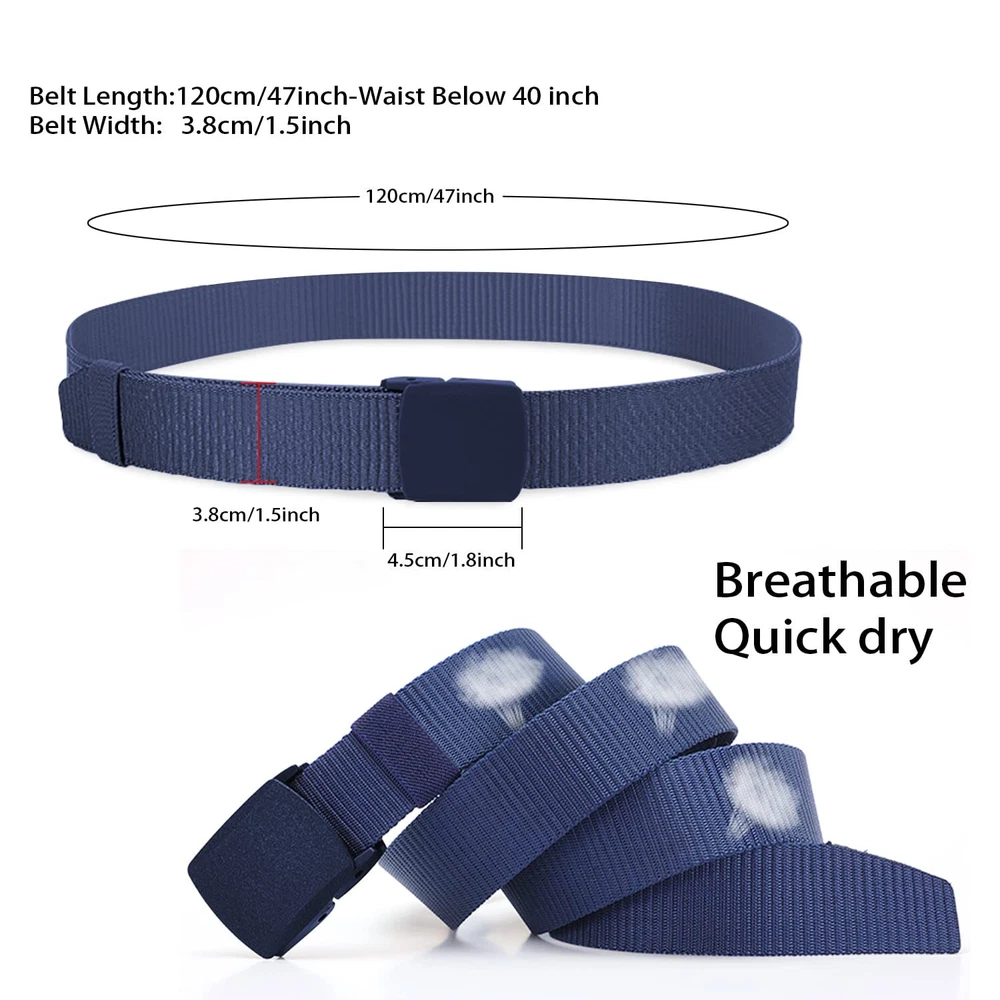 Description Description: 8 Pack Nylon Military Tactical Plastic Buckle Belt Webbing Canvas Outdoor Web Belt If you need one set of Military Tactical Belts for your whole families to use? If you still troubled with how to make your belt match all your daily dress? If you need to change a durable and lightweight tactical belt in adjust size to fit your figure and waist? Easy to use: Just slide the casual belt into the buckle and pull web belt through, the ratchet buckle simply automatic locks. To release the ratchet belt, gently push the lever on the side of the buckle and pull the webbing out. Fit for all dress: The military tactical buckle belt is not only perfect for daily wearing, but also a good partner for outdoors sports, hunting, hiking, shooting, riding, running, golf, water sports etc. Lightweight And Durable: Belts strap made of strong and durable Nylon, supply more relaxed, lightweight belts for you. Each Military Tactical Plastic Buckle Belt Webbing Canvas Outdoor Web Belt have been tested to ensure two years lifetime using in the normal circumstances. Material: The Buckle is made of hard plastic and with special matte surface, make the buckle more attractive and durable. The Strap is made of strong and durable nylon material. Durable and breathable webbing belt for tactical activities. No holes allows easy adjustment. Specification: Size: Belt Total Length: 120cm / 47.2 inch. Belt Width: 1.45 inch./ Perfect for Waistline under 45'' Quantity: 8 Pack Color:As picture 8 Pack Tactical Belts- The package include 8 pieces military belt web belt in different color.The canvas belt is designed for men,lightweight, soft, flexible, sturdy and durable, sweat absorption and dry fast.One week belt in different style 8 Different Color Tactical Belts Buckle Belt Canvas Belt - With 8 different color nylon belt for choose,enough quantity and color to match all your daily dress.Suitable for daily outdoor sports (Hiking, Climbing Mountains Adjust Length for Different Age and Figure- The tactical belts military belt web belt canvas belt buckle belt canvas belt is designed with no hole,which allow to adjust the belt and removable buckles as your needs.Adjust the size depending on your waist and what you are carrying Durable & Lifetime Use- The nylon belt tactical belt military belt is made of thickness nylon,which is Non-Metal construction, Nickel Free, Non-Allergic. Allow you to be able to go through a metal detector or airport security without having to take it off Fast Dry & Easy to Use- Just slide the casual belt into the buckle and pull web belt through, the ratchet buckle simply automatic locks.To release the ratchet belt, gently push the lever on the side of the buckle and pull the webbing out. Wash it with water and air dry if it is dirty Match All Daily Dress- This belt is suitable for lightweight, Quick Dry, Comfort Nylon material Strap with Plastic Buckle suitable for your outdoor sports (Hiking, Climbing Mountains, etc), military uniforms matching and quickly passing security checkpoint. The most commonly wearing is daily wearing, this Belts are good matching your slacks or jeans