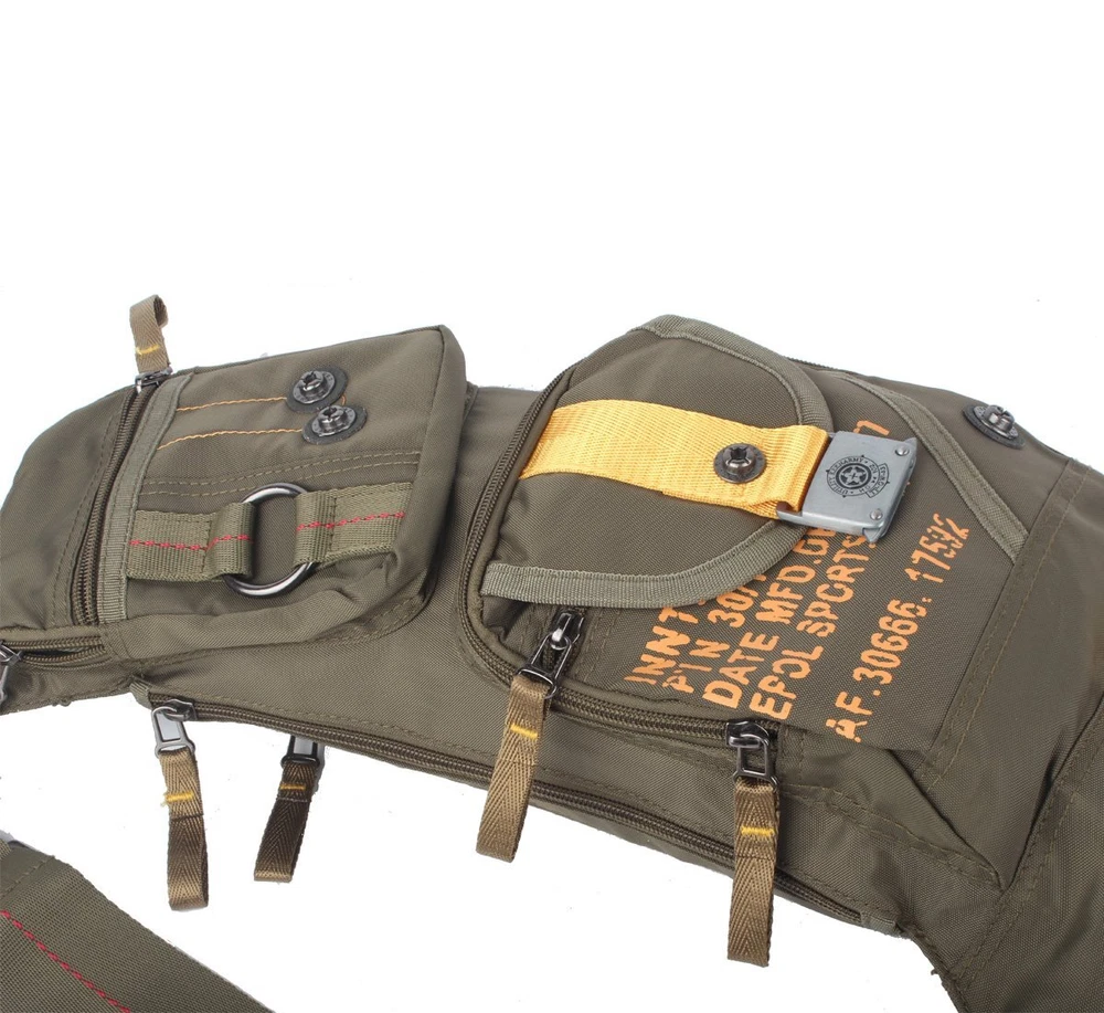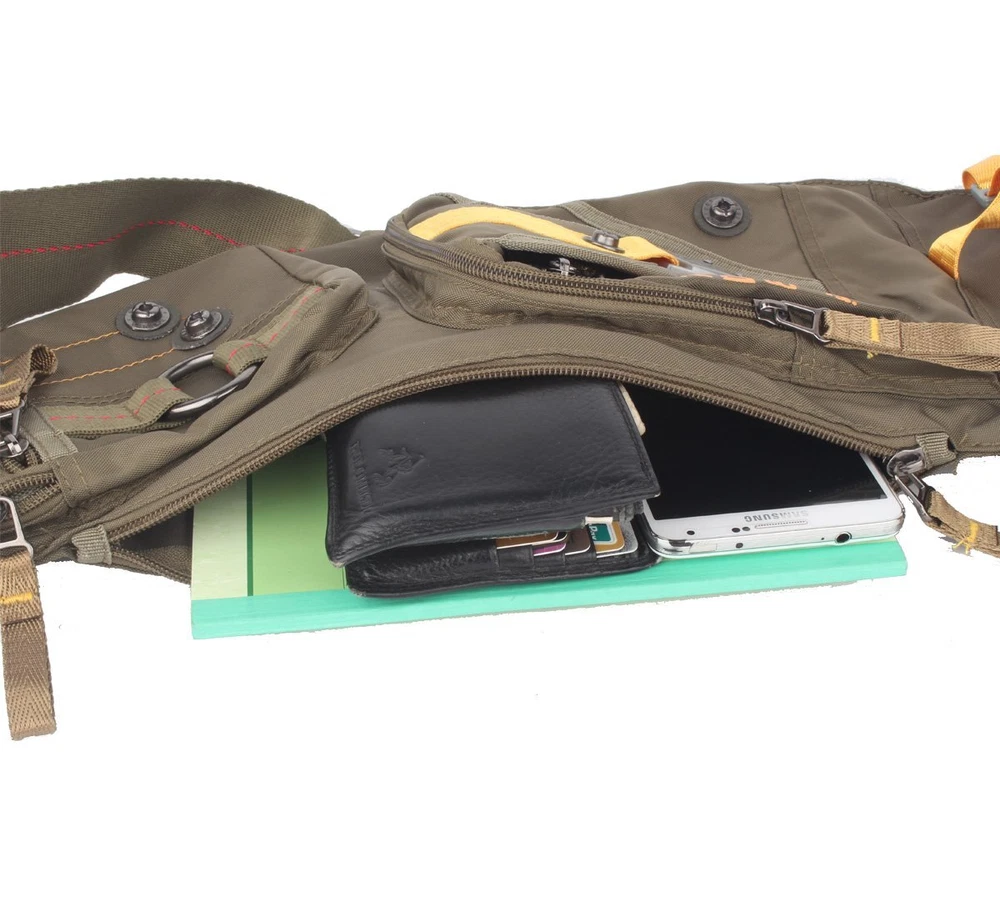 Bag is made from light weight nylon material, durable and waterproof. Fits standard iPad and tablets; Come with multiple convenient pockets, good for daily use or any outdoor activities. MULTI COMPARTMENTS. New Moon shape with many pockets for storage and organization. Main compartment fits 10-in tablets and medium camera perfectly. Front pockets for phone, wallets,gear and small accessories. Back pocket for pen, small notebooks. Also including points to clip carabiners. LIGHTWEIGHT (0.9 pounds) but STRONG. A true friendly sling bag, really good for carrying in sports, travel, hiking, running, cycling or day use. DURABLE and WATERPROOF. The sling bag is made from highly rip and water resistant nylon, provide strengthen and long-lasting performance with minimal weight. Useful and Effective. With this bag, no longer to store all your belongings in winter coat pockets or in summer pants pockets, walk comfortable and let your hands free. Dimensions are 9.4 x 22 x 4.3. Strap adjustable, suitable for men and women.