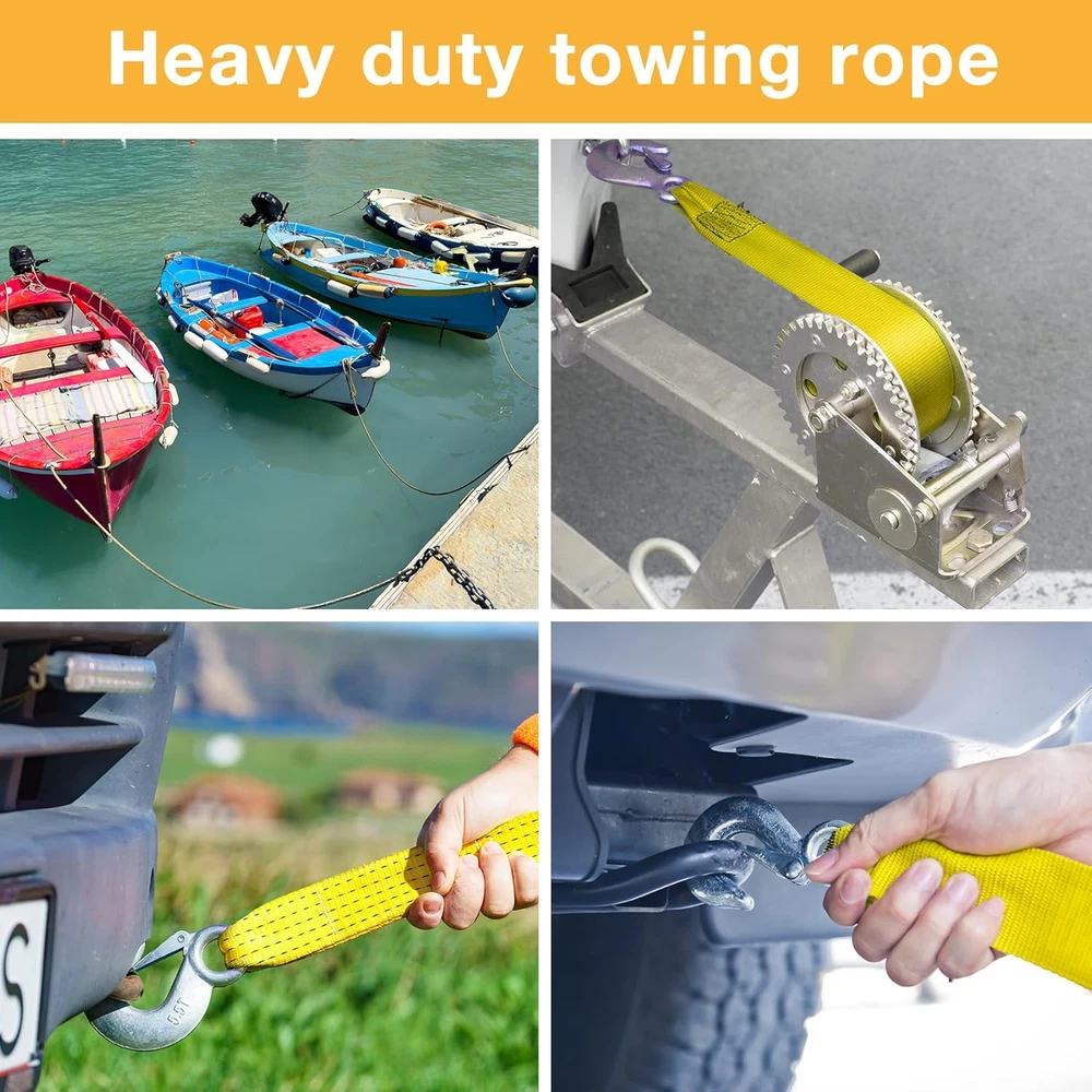 Store New Arrivals Add to Favorite View Feedback Contact Nylon Tow Strap with Hooks 2" X 20 Ft, 15000Lb Break Strengthened Towing Rope Kit for Trucks Vehicles Towing Acessories,Tow Cable for Truck Boat,Roadside Emergency Car Kit Description Item model number -2INX20FT-15Klb Unit Count 1.0 Count Fastener Type Hook Fastener Material zinc-coated iron Color Yellow - 2In x 20Ft with Hook Material Nylon Country of Origin China Load Capacity 15000 Pound Vehicle Service Type Truck Item Weight 2.12 pounds Manufacturer Part Number -2INX20FT-15Klb Model -2INX20FT-15Klb Tensile Strength 15000 Pounds Number of Pieces 1 Product Dimensions 2"L x 240"W Premium Quality Material: 2-inch x 20 feet high strength polyester strap with hooks, 15,000Lb break strength, it holds strong under the harshest conditions. Bright yellow for easy visibility. Safety Hooks: Each solid strap hook features a safety buckle and is made from drop-forged, heat-treated metal for reliability and extra security. Durability: Made from polyester, the tow strap has a reinforced weave pattern that makes it more durable and flexible while preventing abrasion and unraveling. Ease To use : This tow strap is designed with ease of use in mind. It features a simple, straightforward design that is easy to attach and remove, even when you are working in tight spaces or under difficult conditions. Universal: Appropriate for most cars, off-road vehicles, Pickup Truck and other models. Product Description DOUBLE-LAYER CONSTRUCTION Each Strap Is Double-Layered Construction With Extra-Long Stitching For Weather Resistance And Greater Durability. STURDY METAL HOOKS Each Drop Forged Steel Hook Is Super Durable And Includes A Safety Latch For A Secure Hold For Towing. TIGHT WEAVING Made Of Polyester, Bearing Weight, Peace Of Mind With Use ABOUT US We offer the best prices around on high quality products. Our E-store includes media such as books, movies, music and games while offering electronics, toys, sporting apparel, clothing, tools, general home, garden items and more. SHIPPING We are always working hard to ensure your package arrives as soon as possible. Please understand that some factors like weather, high postal traffic, and the performance of shipping companies are outside of our control. We offer free shipping to the lower 48 states and ship within 2 business days of payment, usually sooner. We do not accept P.O. Boxes. Please provide a physical address. For shipping outside of the continental USA, we only use eBay's Global Shipping Program.The item is shipped to KY and then sent to the rest of the world. International customers are responsible for all duties and taxes. Continue to check out in order to calculate costs for shipping the item to your country. Messages regarding eBay's Global Shipping Program MUST be directed at eBay EXCLUSIVELY. RETURNS We offer a 30-Day Return Policy on items which you are not completely satisfied with. You have the option for a full-refund or an exchange of the item. No returns are available on items shipped outside of the USA. PAYMENT We accept PayPal. CONTACT US This page content is yet to come Please ad us to your favorite seller and visit again later Thank You CUSTOMER SATISFACTION We try our very best to make sure every customer is completely satisfied. If there's a problem, message us! We're happy to help. WE ACCEPT Copyright © 2021 AutoDS. | All Rights Reserved