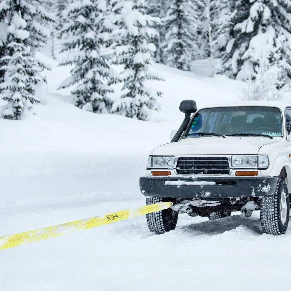 2 inch x 20 feet Yellow High Strength Polyester Strap, 20,000Lb Break Strength Capacity Extra heavy-duty tow strap made from high tensile strength nylon which makes the product to withstand pressure. 20,000 lbs towing capacity ensures that you can tow just about anything you need. Universal Use: Heavy duty tow strap 3"*20 ft, 20,000 LB capacity making it reliable for all possible needs. There's a wide range of uses for Vehicle towing, Pickup Trucks, ATV, SUV .Also you can use it as a tree saver strap or winch extension strap. 2 forged safety hooks with retaining clips, ZINC coated finish on hooks offer three times more corrosion resistance. Storage Bag: come in a storage bag, Roll up the strap and secure in place in free storage bag. JCHL Team strive to provide you highest quality products and best service, 100% satisfaction guarantee. Product Description tow the rope slowly, do not tow it suddenly Specifications: Color: Bright yellow Material: Made of high tensile strength nylon Width: 2 Inch Length: 20 Feet Break Strength Capacity: 20,000lbs Weather resistance and durable perfect length, perfect for tow and recovery car Versatile use for car, suv, atv, jeep, truck and more, or use as tree saver and winch extension. Package include: 1*towing strap in Storage Bag tow the rope slowly, do not tow it suddenly our tow straps come with Safety Hooks, which help ensure that the hooks won't slip from the mounts while in use. Reinforced suture with the strengthen stitching Made of high tensile strength nylon, had much better tear-resistance property and elongation at break, better tensile strength 20ft perfect length for rescuing and any towing situation. Rated 20,000 lbs working capacity.