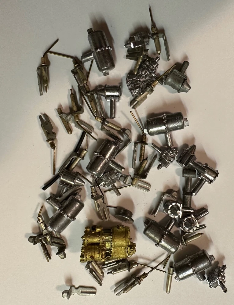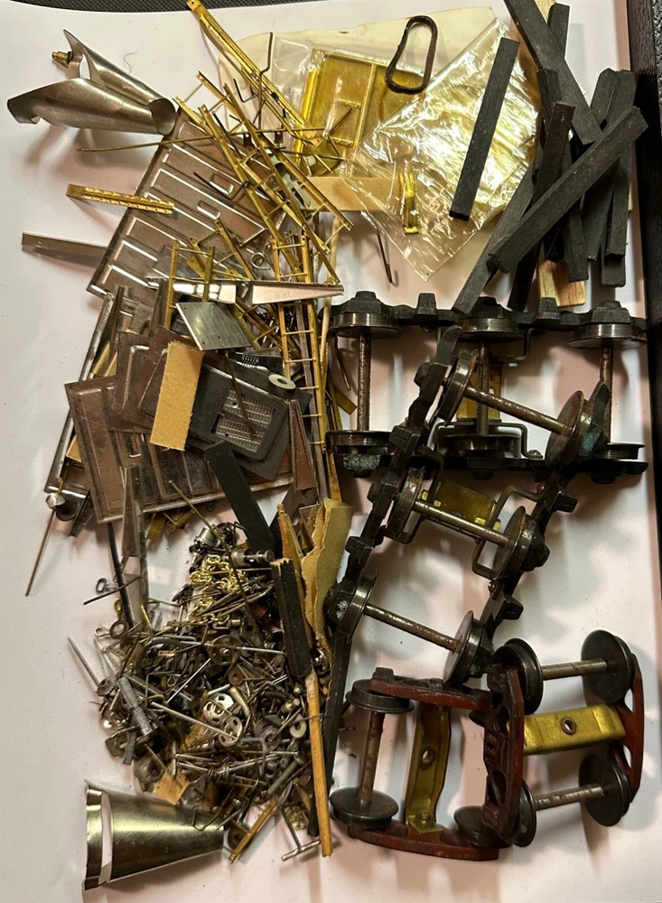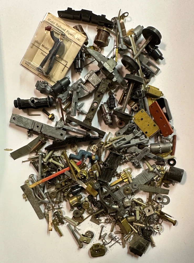 VINTAGE MODEL TRAIN PARTS & ACCESSORIES 10 LBS. OF ASSORTED PARTS & ACCESSORIES - VARIOUS TYPES, MOSTLY "O" SCALE VARIOUS BRANDS, MANY ARE USED, MANY ARE NEW, BALANCE FROM A PALM SPRINGS HOARD WITH DECADES OF GARAGE STORAGE INCLUDING SOME CONTROL SETS (WE DO NOT KNOW IF THEY WORK), WHAT YOU SEE IS EXACTLY WHAT YOU WILL GET, SOLD "AS IS" ***** MOSTLY "O" SCALE - 10 lbs. OF TRAIN / TRACK PARTS AND ACCESSORIES, BRASS, STEEL, PLASTIC. TOO MANY PIECES TO COUNT. Incredible variety. Some very good pieces. Includes, wheels, and all kinds of parts. Hundreds of different items with multiples of most. Some light rust from storage is present on some items. What you see is exactly what you will get. SOLD AS A GROUP LOT ONLY. See images. PAYMENT TERMS: Lots paid with PayPal will be sent within one or two business days. Lots paid for with PayPal must be shipped to the confirmed address on file with PayPal, no exceptions. International customers, please review our INTERNATIONAL TERMS below. PAYMENT TERMS for INTERNATIONAL BUYERS: New International customers may use PayPal on orders up to $500, without prior approval. New International customers who would like to use PayPal on amounts over $500, please inquire before bidding. International customers that have established credit with us, may use PayPal on orders up to $1,500, per shipment. Established customers who would like to use PayPal on amounts over $1,500 should contact us prior to bidding. ALL INTERNATIONAL SHIPMENTS REQUIRE REGISTERED MAIL OR EXPRESS MAIL. WE CAN COMBINE MOST MULTIPLE PURCHASES INTO ONE PACKAGE, UPON REQUEST. We reserve the right to substitute INTERNATIONAL PRIORITY MAIL for INTERNATIONAL EXPRESS MAIL, where required to purchase. We encourage our international buyers to buy several coins at one time, to save on shipping costs. Registered mail is available for most purchases up to $200, and some up to $300, depending on the destination country. Express Mail is required for some purchases over $200, and all purchases over $300. REFUND POLICY & DISCLAIMER: We offer a 14-day refund policy, and your purchase may be returned for any reason whatsoever. However, we do not refund postage. The 14-day period begins the day you receive your item. See additional details and terms below. Pay me securely with your Visa or MasterCard through PayPal!