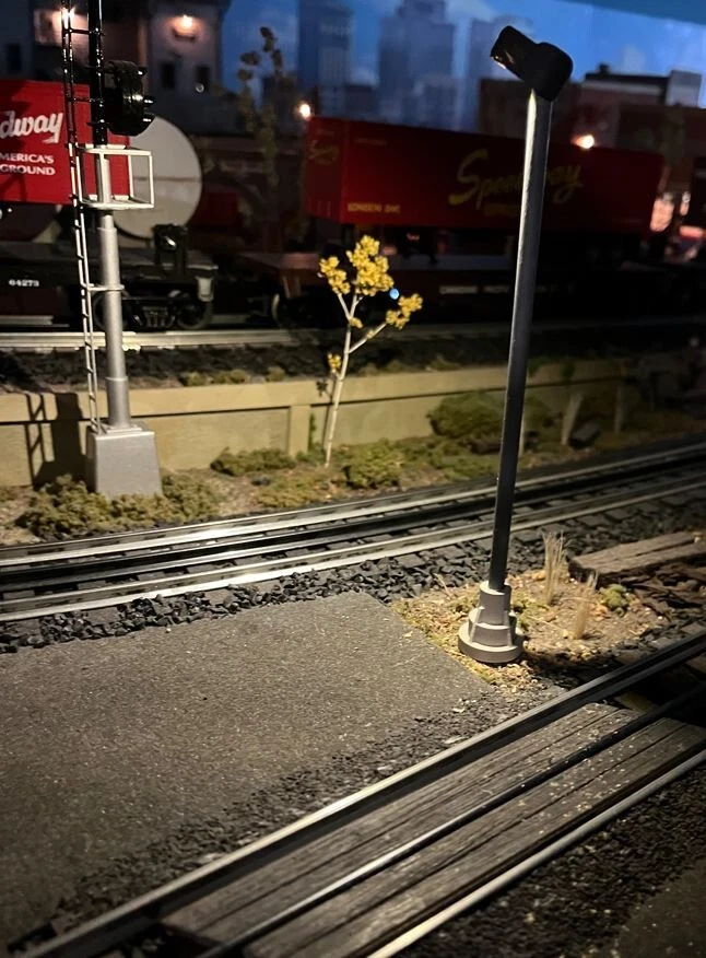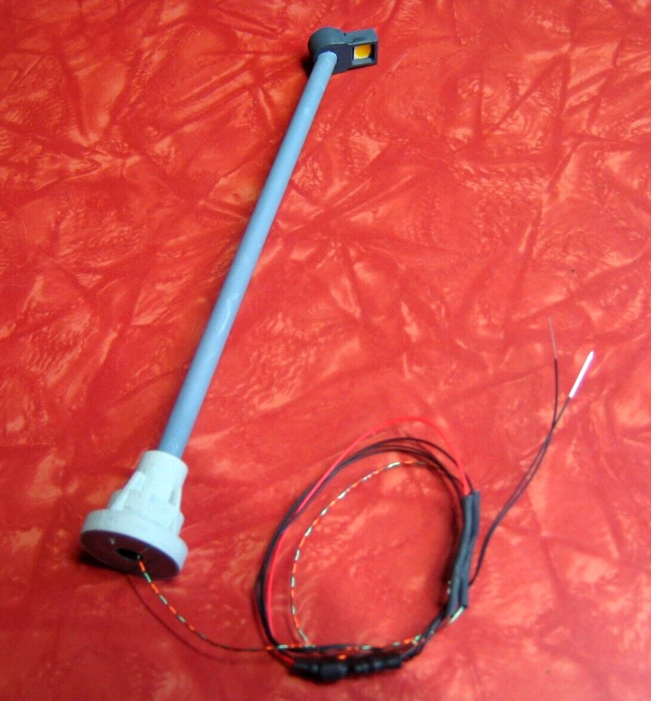 O SCALE FOR RAILROAD YARD, HIGHWAY OR PARKING LOT, LED LIGHTS Package of 2 O Scale 6-6 1/2" high These use High Quality LEDs from EVAN DESIGNS, they can last up to 10 years or (100,000 hours) . A great addition to Lionel, MTH or any Model Train Layout. These lights will work on any voltage between 7-19 AC or DC and can be connected to most power supplies. A simple hook up with generous strong pigtails aprox. 16” already attached. These are Pre-Built and Ready to go. They also include break off mounting pins for breakage protection on layout. Package of 2 @ $27 plus shipping Made in the USA. Shipping cost will be discounted and a refund given if more than one of my Ebay items are shipped in the same carton. Shipped USPS First Class Mail