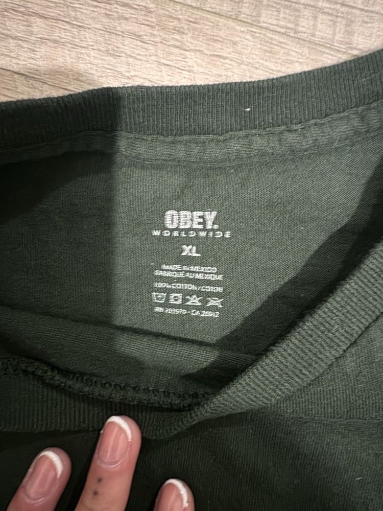 The OBEY Men's Medium Green Graphic Cotton T-Shirt is a stylish and comfortable addition to any man's wardrobe. Made from soft cotton material, this regular fit T-shirt features a bold green color and a unique graphic design, perfect for adding a touch of streetwear flair to your look.