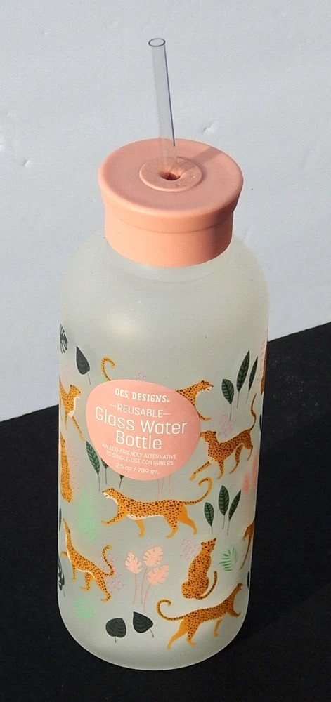 OCS DESIGNS REUSABLE GLASS WATER BOTTLE WITH STRAW ECO-FRIENDLY BRAND NEW 100% AUTHENTIC 25 oz / 739 ml Color: Matte/Multi. BPA FREE SHATTER-RESISTANT BOROSILICATE GLASS DISHWASHER SAFE ECO FRIENDLY- BPA FREE