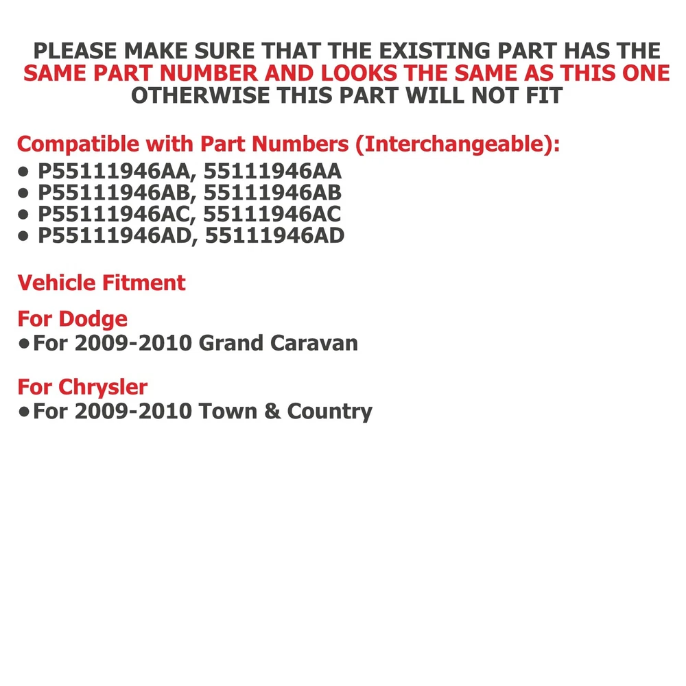 OEM Climate Control Module For Chrysler Dodge IMPORTANT NOTES (FOR THIS PART TO WORK BOTH CONDITIONS BELOW SHOULD APPLY) Please make sure that the existing unit: Has the same button combination as this unit; otherwise, it will not work Has the same number of pins/terminals on the back as this unit; otherwise, it will not work Has the same part number as this one; otherwise it will not work Part Condition Used item Please check all listing photos for more details on item condition Part Details Placement on vehicle: front, dashboard Control type: manual Connector quantity: 2 Pin/Terminal count: 5+16 Compatible with Part Numbers (Interchangeable) P55111946AA, 55111946AA P55111946AB, 55111946AB P55111946AC, 55111946AC P55111946AD, 55111946AD Vehicle Fitment For Chrysler For 2009-2010 Town & Country For Dodge For 2009-2010 Grand Caravan Package Contents 1x Used OEM HVAC control module Returns and Refunds Policy If you have a problem with the items you purchased from us, or if you have any questions or concerns, please contact us before leaving any type of feedback, and we will do our best to make things right for you Buyers have 60 days (unless mentioned otherwise in the listing) to return their item for a refund or exchange (if applicable) We do not offer refunds for installtion costs in the event of unsuccessful installation by a local technician or dealership Disclaimer All product names, brands, logos, and or other trademarks within our sales information are the property of their respective owners. These are used to simplify the identification of the proper replacement part. None of the companies or trademarks affiliate with, endorse or sponsor us or our products
