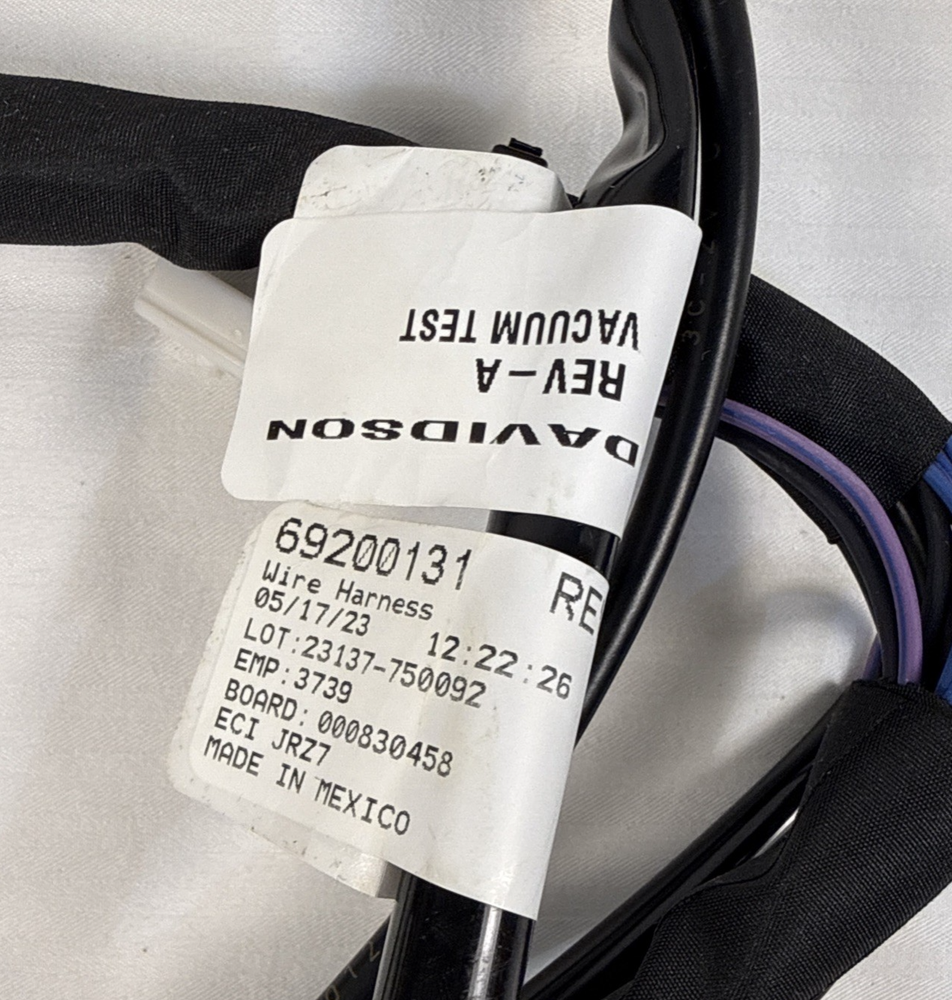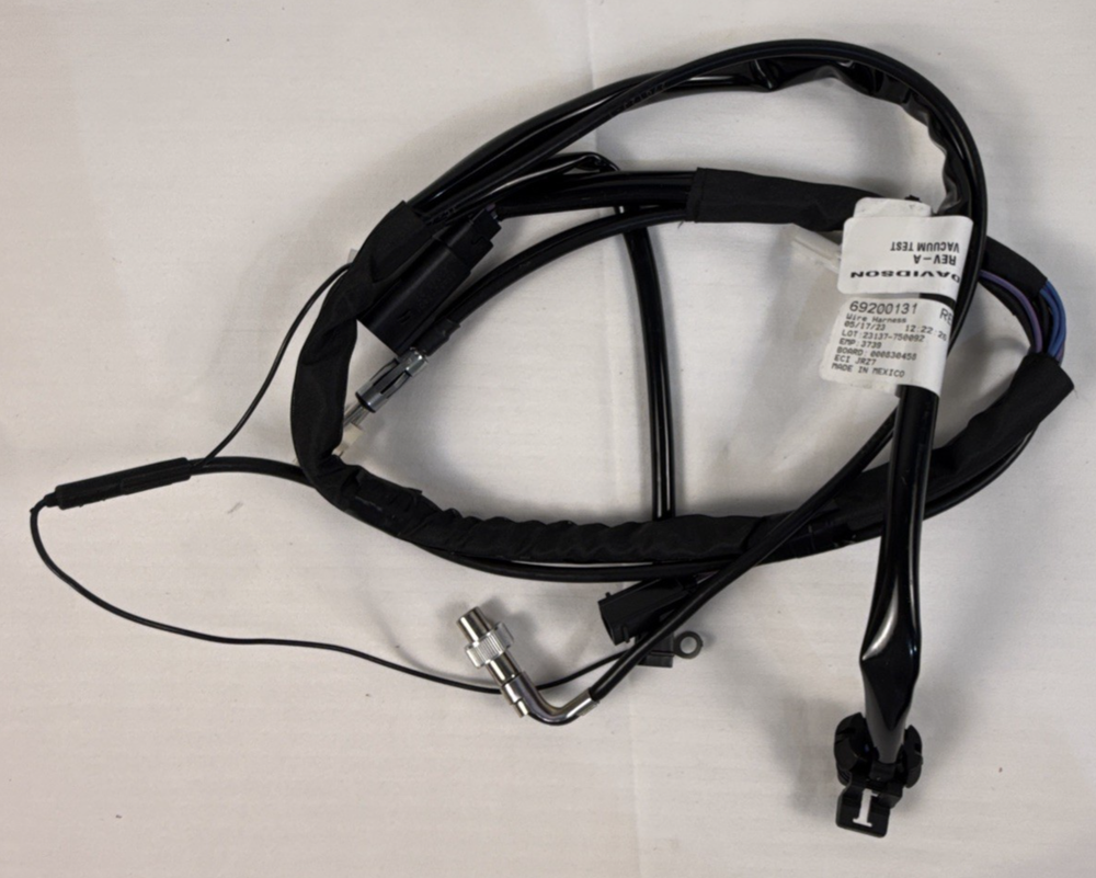 Genuine Harley-Davidson Tour Pak / trunk wiring harness designed for Touring models equipped with Tour Pak lighting. This harness connects the Tour Pak lighting assembly to the motorcycle’s main wiring system and supplies power to the rear light bar, side marker lights, and related lighting components. The harness uses the factory OEM plug-and-play connectors , allowing the Tour Pak lighting to connect to the motorcycle without cutting or modifying the original wiring. It routes from the main harness under the seat into the Tour Pak where it connects to the lighting assembly. Designed for Harley-Davidson Touring motorcycles with factory or accessory Tour Pak systems, this harness ensures proper power delivery and reliable lighting operation. If this is the part you need, your search is over. Features Genuine Harley-Davidson OEM wiring harness Powers Tour Pak rear lighting assembly Connects to OEM 5-pin Tour Pak lighting connector Supports rear light bar and side marker lights Plug-and-play installation with factory connectors Durable wiring for reliable electrical performance Specifications Brand: Harley-Davidson Part Type: Tour Pak / Trunk Wiring Harness Application: Rear Tour Pak Lighting Connector Type: OEM multi-pin connectors Placement: Touring trunk / Tour Pak assembly Fitment Fits Harley-Davidson Touring models equipped with Tour Pak lighting (2014-2025) including: Street Glide Road Glide Road King Electra Glide Ultra Limited Please verify compatibility with your motorcycle before purchase. What’s Included Harley-Davidson Tour Pak Wiring Harness Connectors for Tour Pak lighting system