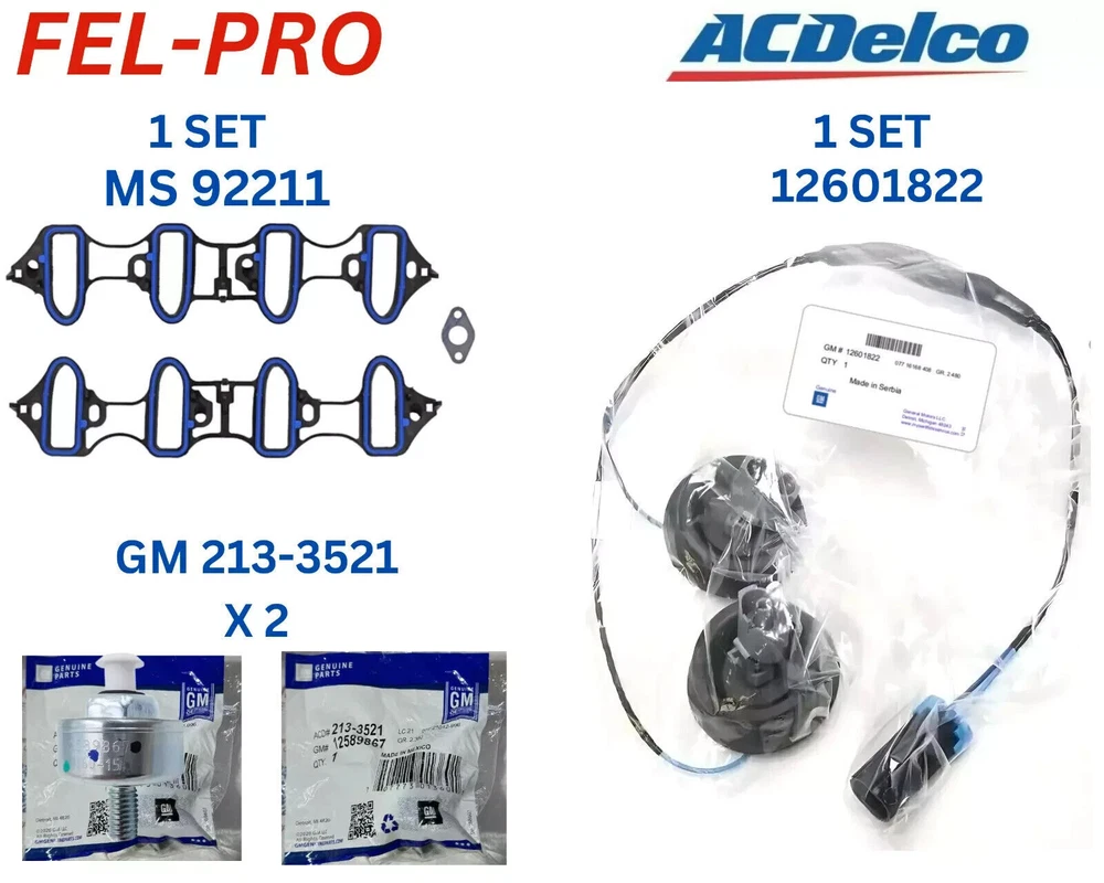 Fit Vehicles 2004-06 Cadillac Escalade Engine Knock Sensor & Harness Kit 2004-06 Cadillac Escalade ESV Engine Knock Sensor & Harness Kit 2004-06 Cadillac Escalade EXT Engine Knock Sensor & Harness Kit 2004-06 Chevrolet Avalanche 1500 Engine Knock Sensor & Harness Kit 2004-07 Chevrolet Express 1500 Van V8 5.3L Engine Knock Sensor & Harness Kit 2004-07 Chevrolet Express 2500 Van V8 6.0L Engine Knock Sensor & Harness Kit 2004-05 Chevrolet Express 2500 Van V8 5.3L Engine Knock Sensor & Harness Kit 2004-05 Chevrolet Express 2500 Van V8 4.8L Engine Knock Sensor & Harness Kit 2004-07 Chevrolet Express 3500 Van Engine Knock Sensor & Harness Kit 2003-06 Chevrolet Silverado 1500 V8 6.0L Engine Knock Sensor & Harness Kit 2004-06 Chevrolet Silverado 1500 V8 4.8L Engine Knock Sensor & Harness Kit 2002-06 Chevrolet Silverado 1500 V8 5.3L Engine Knock Sensor & Harness Kit 2007 Chevrolet Silverado 1500 Classic V8 6.0L Engine Knock Sensor & Harness Kit 2007 Chevrolet Silverado 1500 Classic V8 5.3L Engine Knock Sensor & Harness Kit 2007 Chevrolet Silverado 1500 Classic V8 4.8L Engine Knock Sensor & Harness Kit 2005-06 Chevrolet Silverado 1500 HD Engine Knock Sensor & Harness Kit 2007 Chevrolet Silverado 1500 HD Classic Engine Knock Sensor & Harness Kit 2004 Chevrolet Silverado 2500 V8 6.0L Engine Knock Sensor & Harness Kit 2004 Chevrolet Silverado 2500 V8 5.3L Engine Knock Sensor & Harness Kit 2004-06 Chevrolet Silverado 2500 HD V8 6.0L Engine Knock Sensor & Harness Kit 2007 Chevrolet Silverado 2500 HD Classic V8 6.0L Engine Knock Sensor & Harness Kit 2004-06 Chevrolet Silverado 3500 V8 6.0L Engine Knock Sensor & Harness Kit 2007 Chevrolet Silverado 3500 Classic V8 6.0L Engine Knock Sensor & Harness Kit 2004-06 Chevrolet Suburban 1500 Engine Knock Sensor & Harness Kit 2004-06 Chevrolet Suburban 2500 V8 6.0L Engine Knock Sensor & Harness Kit 2004-06 Chevrolet Tahoe V8 4.8L Engine Knock Sensor & Harness Kit 2004-06 Chevrolet Tahoe V8 5.3L Engine Knock Sensor & Harness Kit 2004 GMC Envoy XL V8 5.3L Engine Knock Sensor & Harness Kit 2004-07 GMC Savana 1500 Van V8 5.3L Engine Knock Sensor & Harness Kit 2004-07 GMC Savana 2500 Van V8 6.0L Engine Knock Sensor & Harness Kit 2004-07 GMC Savana 2500 Van V8 5.3L Engine Knock Sensor & Harness Kit 2004-07 GMC Savana 2500 Van V8 4.8L Engine Knock Sensor & Harness Kit 2004-07 GMC Savana 3500 Van Engine Knock Sensor & Harness Kit 2002-06 GMC Sierra 1500 V8 5.3L Engine Knock Sensor & Harness Kit 2003-06 GMC Sierra 1500 V8 6.0L Engine Knock Sensor & Harness Kit 2004-06 GMC Sierra 1500 V8 4.8L Engine Knock Sensor & Harness Kit 2007 GMC Sierra 1500 Classic V8 6.0L Engine Knock Sensor & Harness Kit 2007 GMC Sierra 1500 Classic V8 5.3L Engine Knock Sensor & Harness Kit 2007 GMC Sierra 1500 Classic V8 4.8L Engine Knock Sensor & Harness Kit 2005-06 GMC Sierra 1500 HD Engine Knock Sensor & Harness Kit 2007 GMC Sierra 1500 HD Classic Engine Knock Sensor & Harness Kit 2004 GMC Sierra 2500 V8 6.0L Engine Knock Sensor & Harness Kit 2004-06 GMC Sierra 2500 HD V8 6.0L Engine Knock Sensor & Harness Kit 2007 GMC Sierra 2500 HD Classic V8 6.0L (8th Vin Digit U) Engine Knock Sensor & Harness Kit 2005-06 GMC Sierra 3500 V8 6.0L (8th Vin Digit U) Engine Knock Sensor & Harness Kit 2004 GMC Sierra 3500 V8 6.0L Engine Knock Sensor & Harness Kit 2007 GMC Sierra 3500 Classic V8 6.0L (8th Vin Digit U) Engine Knock Sensor & Harness Kit 2004-06 GMC Yukon Denali V8 6.0L Engine Knock Sensor & Harness Kit 2004-06 GMC Yukon V8 5.3L Engine Knock Sensor & Harness Kit 2006 GMC Yukon XL 1500 V8 5.3L Engine Knock Sensor & Harness Kit 2004-06 GMC Yukon XL 2500 V8 6.0L Engine Knock Sensor & Harness Kit 2005-07 Hummer H2 Engine Knock Sensor & Harness Kit Part Number 12575869,12589867,12597415,12601822,81045-66030,917-033, MS96587,89060413 ,MS92211, MS18007,MS4657,MS16340 Package Included 1x 12601822 Knock Sensor Harness 2x 213-3521 12589867 Sensors 2x 89060413 Gaskets As pictures shown Note: Please make sure the Part number in our listing is the same as your original one. Listing and template services provided by inkFrog